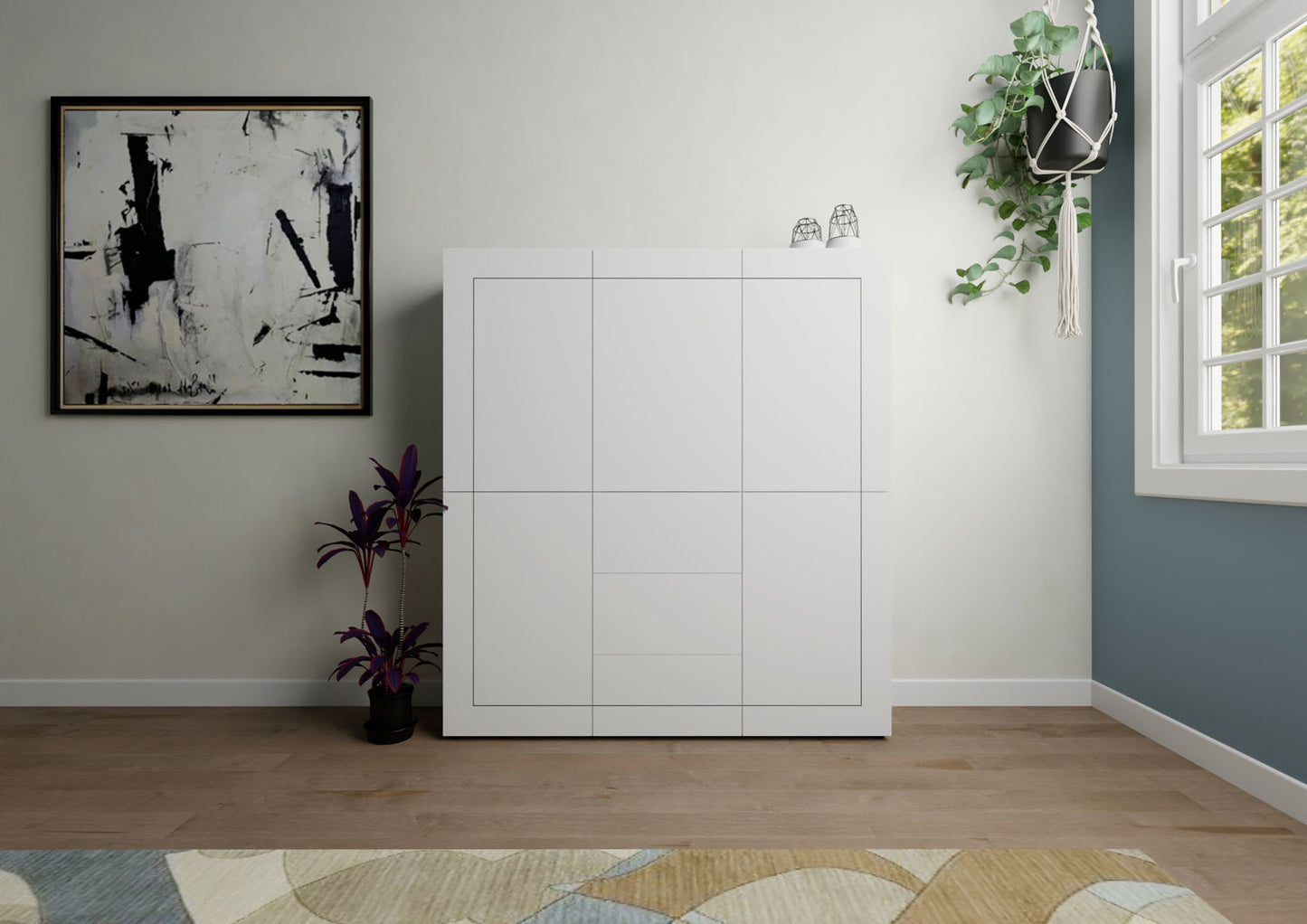 Credenza alta 5 ante/3 cassetti 150x35x165 cm Fassa bianco lucido