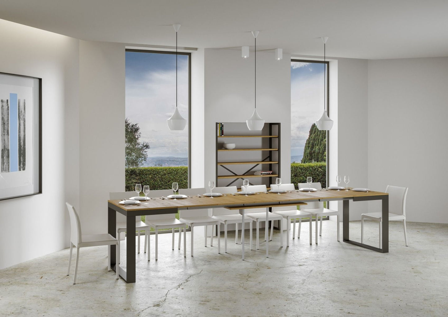 Tavolo allungabile 90x120/380 cm Pieve Evolution Quercia Natura telaio Antracite