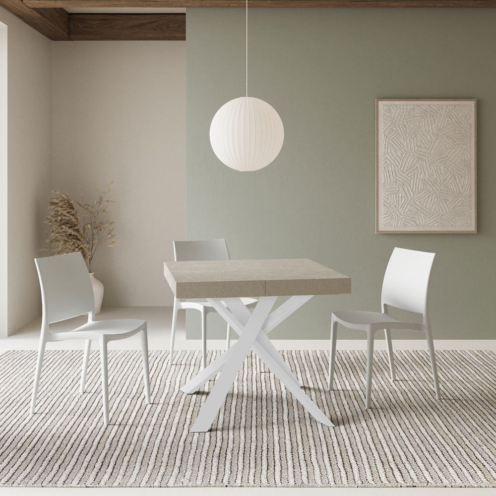 Tavolo allungabile 90x90/194 cm Casaleone Premium cashmere gambe bianche