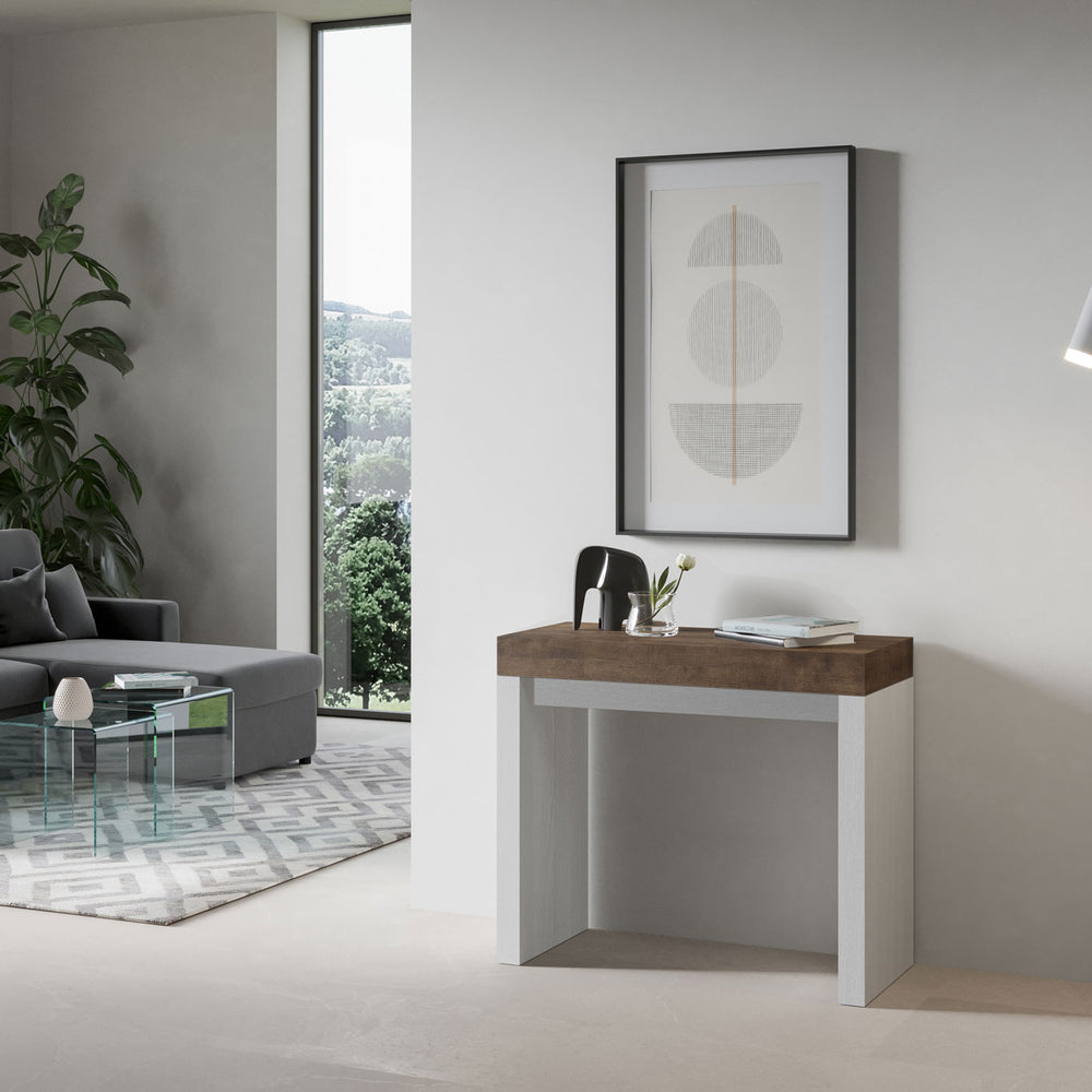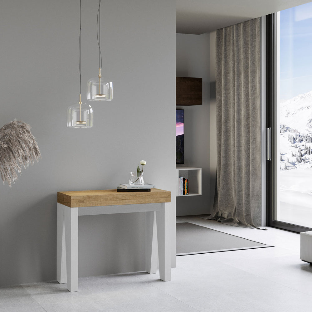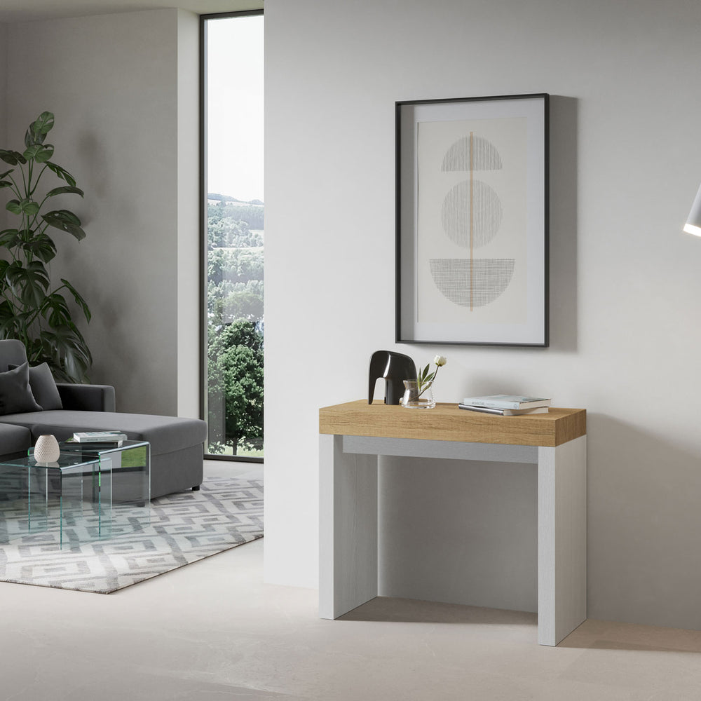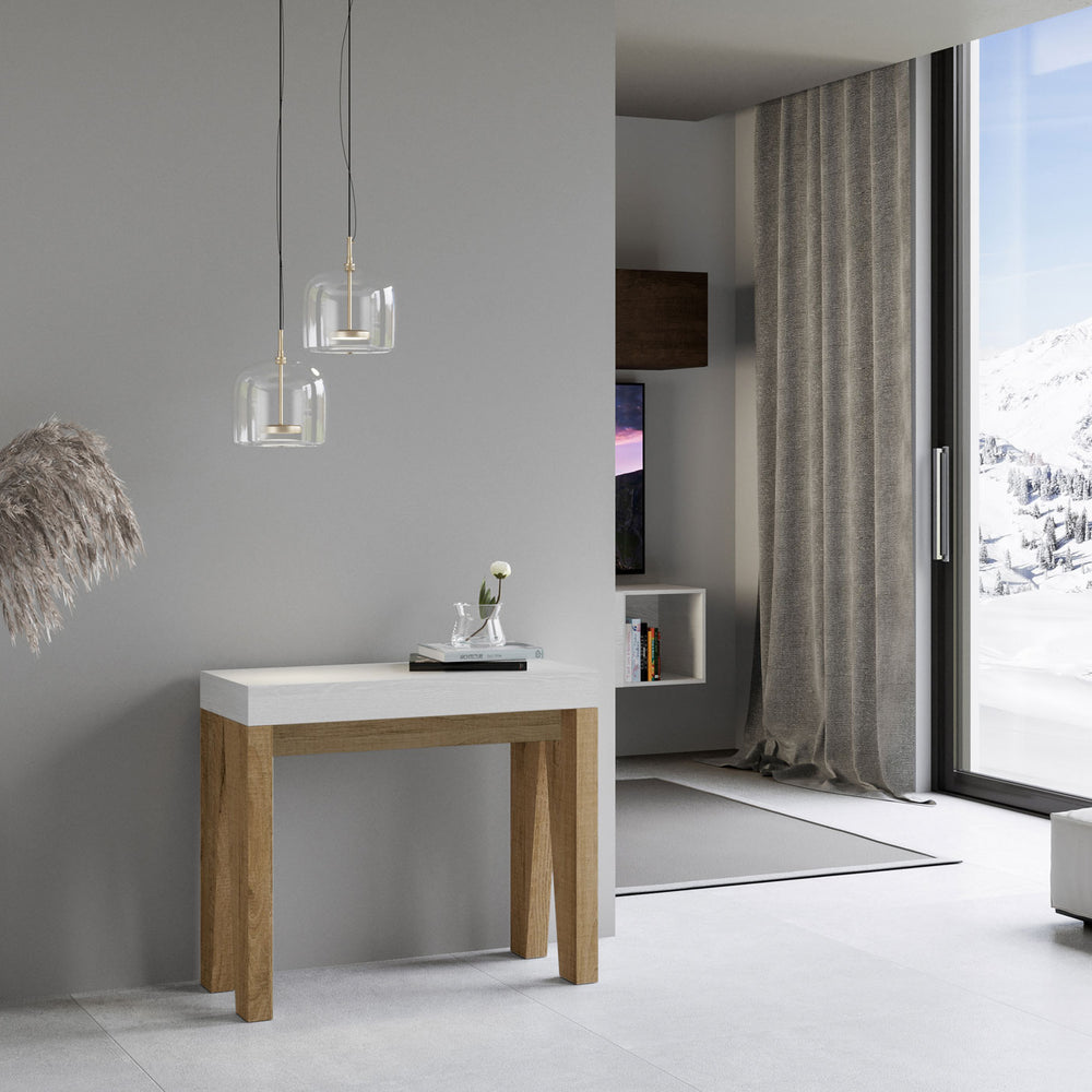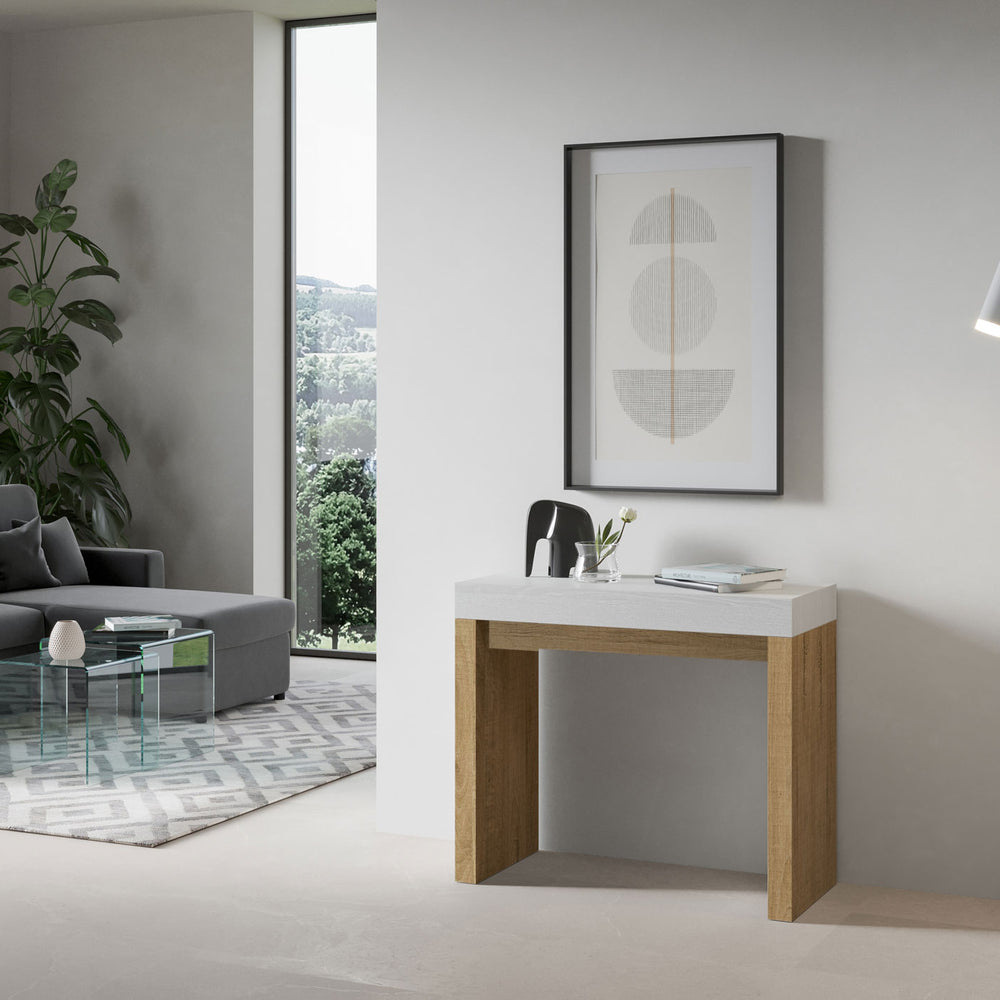 Consolle allungabile 90x40/300 cm Pianiga Mix piano Bianco Frassino - struttura Quercia Natura