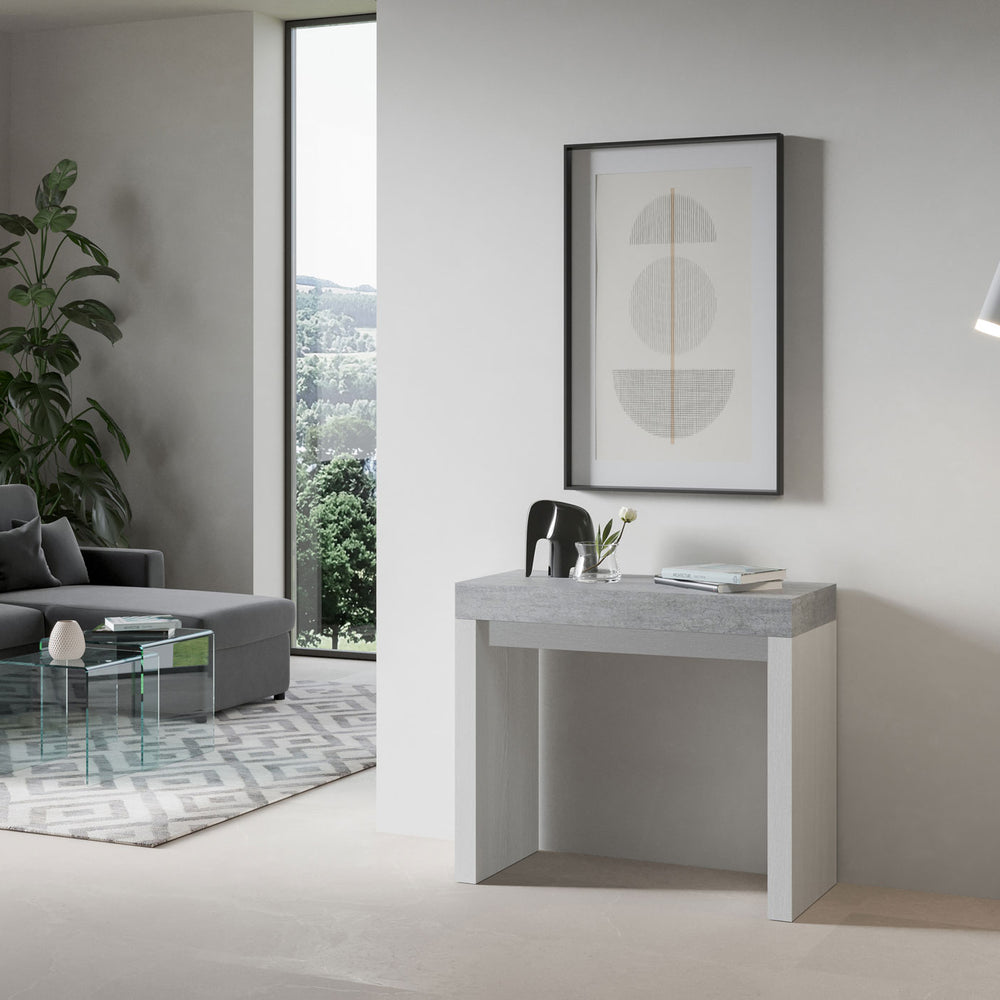 Consolle allungabile 90x40/300 cm Pianiga Mix piano Cemento - struttura Bianco Frassino