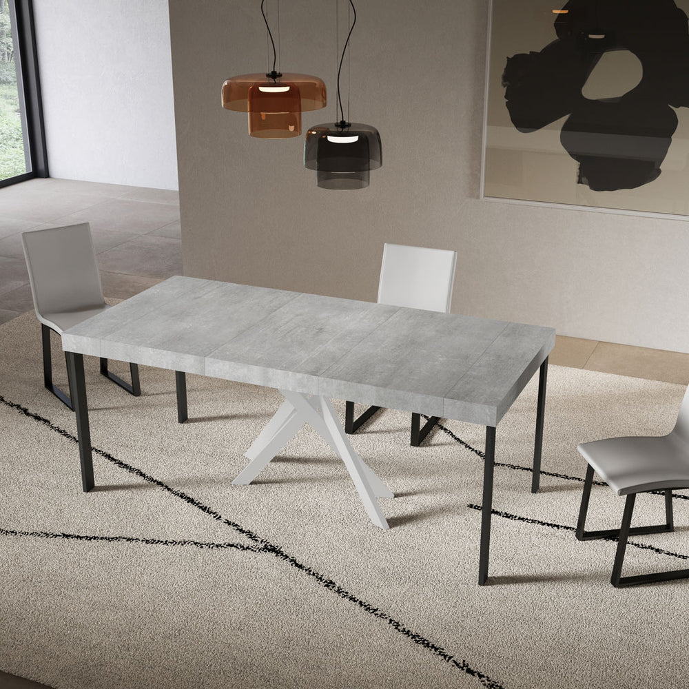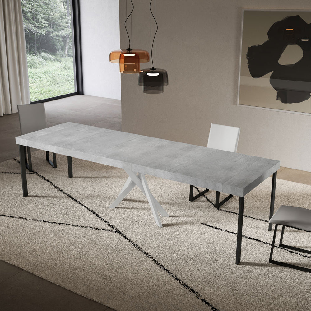 Consolle allungabile 90x40/300 cm Altavilla Premium Cemento gambe bianche