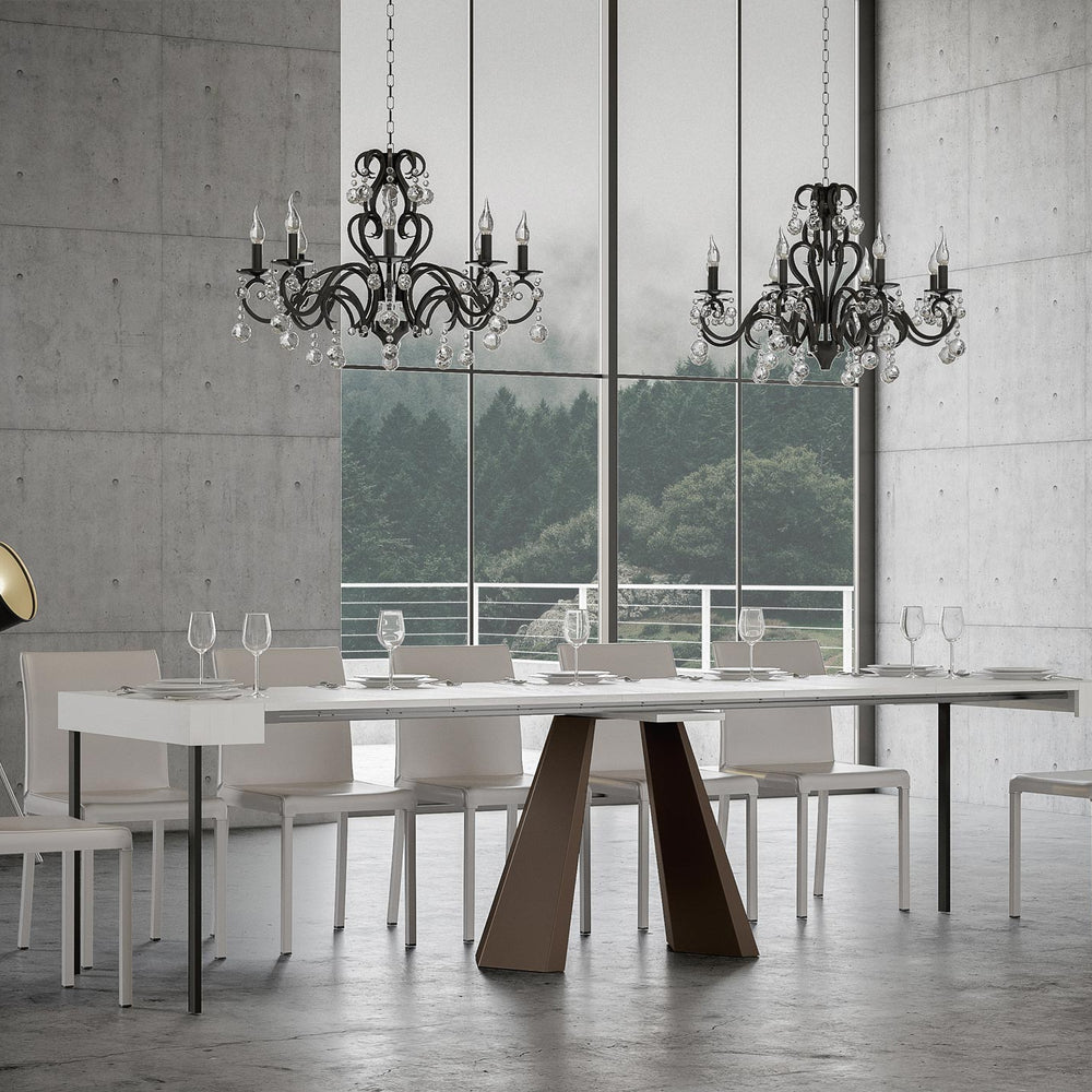 Consolle allungabile Fossò, versatile e robusta, un complemento perfetto per ogni ambiente della casa: ingresso, cucina, sala da pranzo, soggiorno o corridoio.La consolle allungabile Fossò può essere facilmente trasformata in un ampio tavolo da pranzo lungo fino a 300 cm, in grado di ospitare 14 persone.Realizzata con pannelli in nobilitato, gambe in ferro.Il sistema di allunghe con guide telescopiche in alluminio e i sostegni laterali in dotazione rendono la consolle stabile e robusta.Una volta che la consolle è chiusa, le allunghe devono essere riposte altrove.Made in ItalyDimensioni:Consolle chiusa: L.90 P.40 H.77 cmLunghezza con 1 allunga: 92 cmLunghezza con 2 allunghe: 144 cmLunghezza con 3 allunghe: 196 cmLunghezza con 4 allunghe: 248 cmLunghezza con 5 allunghe: 300 cm