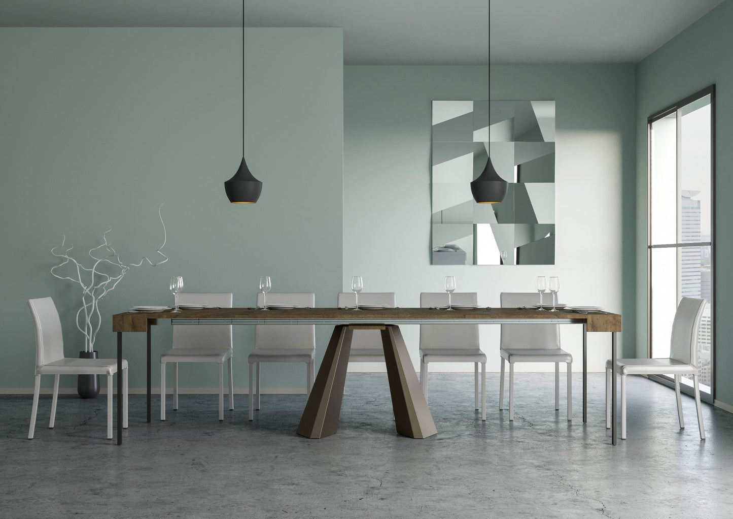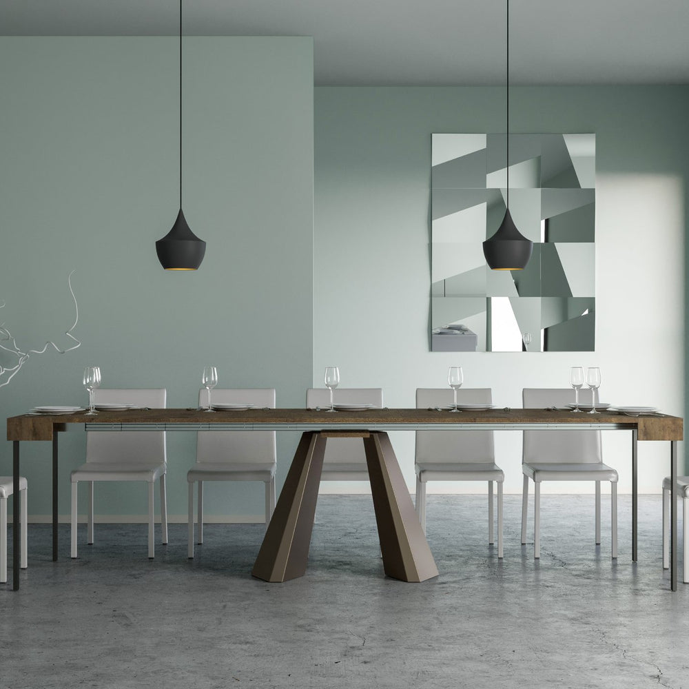 Consolle allungabile Fossò, versatile e robusta, un complemento perfetto per ogni ambiente della casa: ingresso, cucina, sala da pranzo, soggiorno o corridoio.La consolle allungabile Fossò può essere facilmente trasformata in un ampio tavolo da pranzo lungo fino a 300 cm, in grado di ospitare 14 persone.Realizzata con pannelli in nobilitato, gambe in ferro.Il sistema di allunghe con guide telescopiche in alluminio e i sostegni laterali in dotazione rendono la consolle stabile e robusta.Una volta che la consolle è chiusa, le allunghe devono essere riposte altrove.Made in ItalyDimensioni:Consolle chiusa: L.90 P.40 H.77 cmLunghezza con 1 allunga: 92 cmLunghezza con 2 allunghe: 144 cmLunghezza con 3 allunghe: 196 cmLunghezza con 4 allunghe: 248 cmLunghezza con 5 allunghe: 300 cm