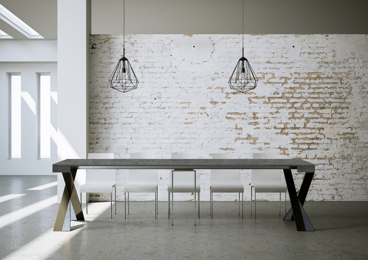 Consolle allungabile 90x40/300 cm Longarone Cemento telaio Antracite