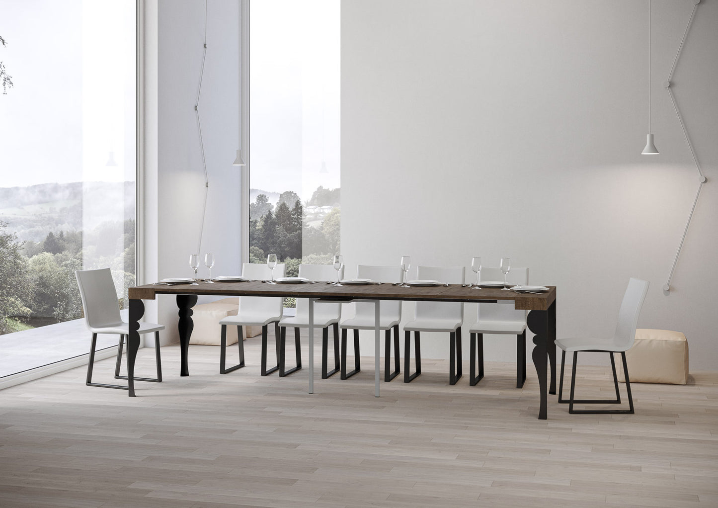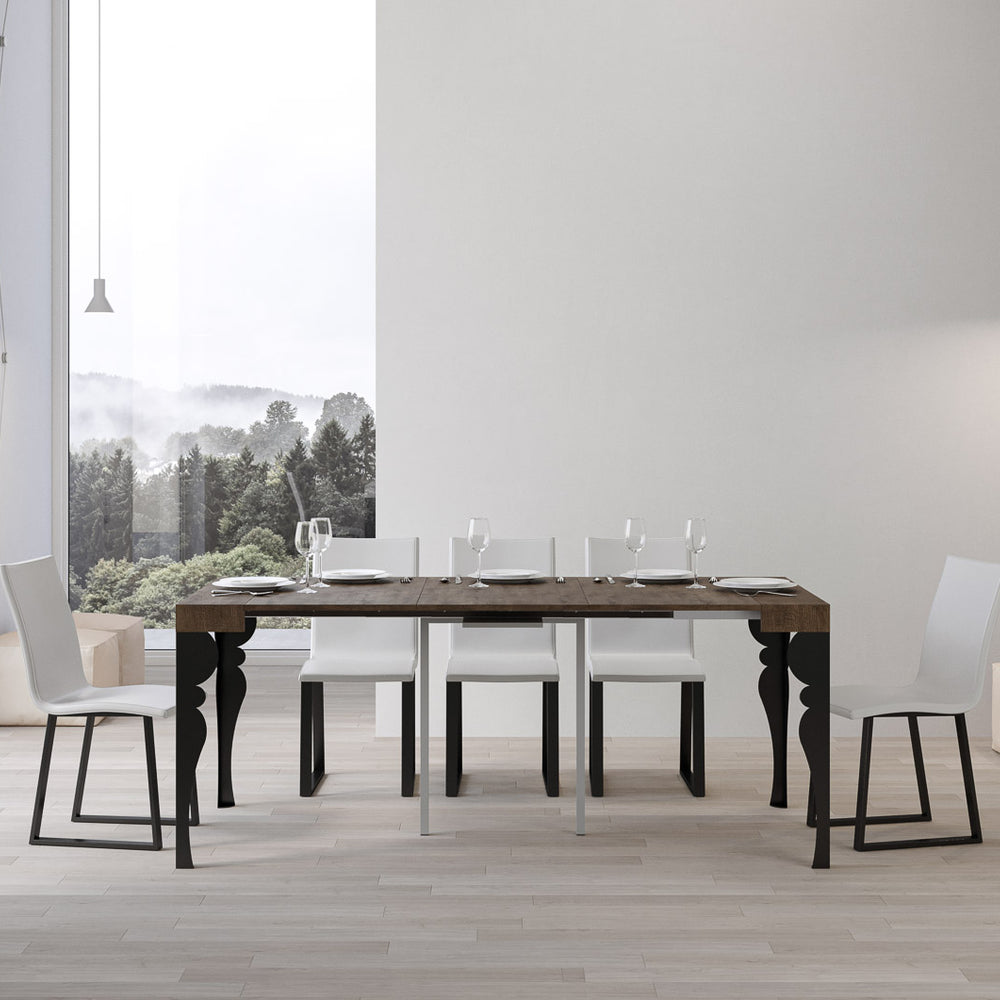 Consolle allungabile Mira, versatile e robusta, un complemento perfetto per ogni ambiente della casa: ingresso, cucina, sala da pranzo, soggiorno o corridoio.La consolle allungabile Mira può essere facilmente trasformata in un ampio tavolo da pranzo lungo fino a 300 cm, in grado di ospitare 14 persone.Realizzata con pannelli in nobilitato, gambe in ferro.Il sistema di allunghe con guide telescopiche in alluminio e il sostegno centrale in dotazione rendono la consolle stabile e robusta.Una volta che la consolle è chiusa, le allunghe devono essere riposte altrove.Made in ItalyDimensioni:Consolle chiusa: L.90 P.40 H.77 cmLunghezza con 1 allunga: 92 cmLunghezza con 2 allunghe: 144 cmLunghezza con 3 allunghe: 196 cmLunghezza con 4 allunghe: 248 cmLunghezza con 5 allunghe: 300 cm