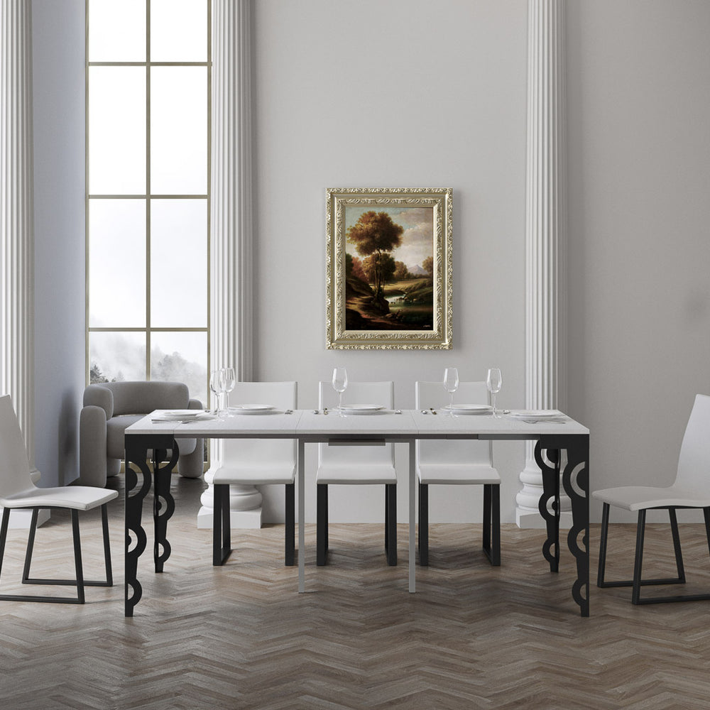 Consolle allungabile Noale Evolution, versatile e robusta, un complemento perfetto per ogni ambiente della casa: ingresso, cucina, sala da pranzo, soggiorno o corridoio.La consolle allungabile Noale Evolution può essere facilmente trasformata in un ampio tavolo da pranzo lungo fino a 300 cm, in grado di ospitare 14 persone.Realizzata con pannelli in nobilitato, telaio e gambe in ferro.Il sistema di allunghe con guide telescopiche in alluminio e il sostegno centrale in dotazione rendono la consolle stabile e robusta.Una volta che la consolle è chiusa, le allunghe devono essere riposte altrove.Made in ItalyDimensioni:Consolle chiusa: L.90 P.40 H.77 cmLunghezza con 1 allunga: 92 cmLunghezza con 2 allunghe: 144 cmLunghezza con 3 allunghe: 196 cmLunghezza con 4 allunghe: 248 cmLunghezza con 5 allunghe: 300 cm