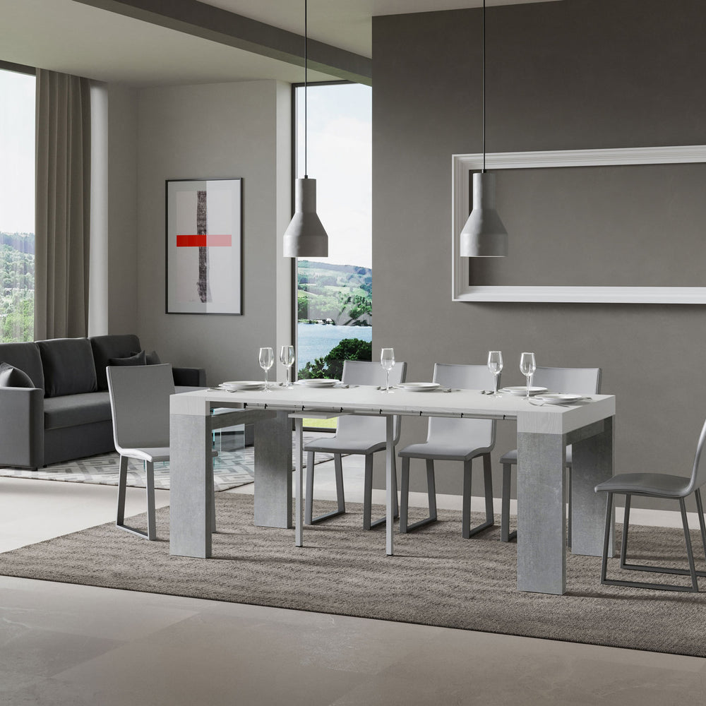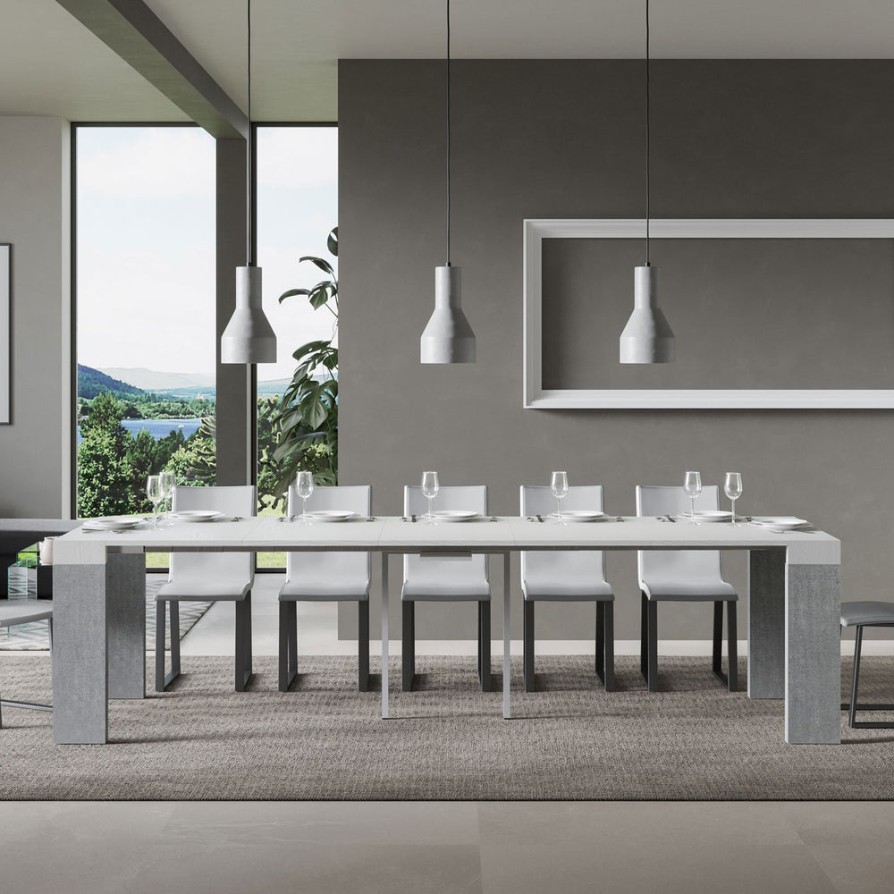Consolle allungabile 90x40/300 cm Pianiga Mix piano Bianco Frassino - struttura Cemento