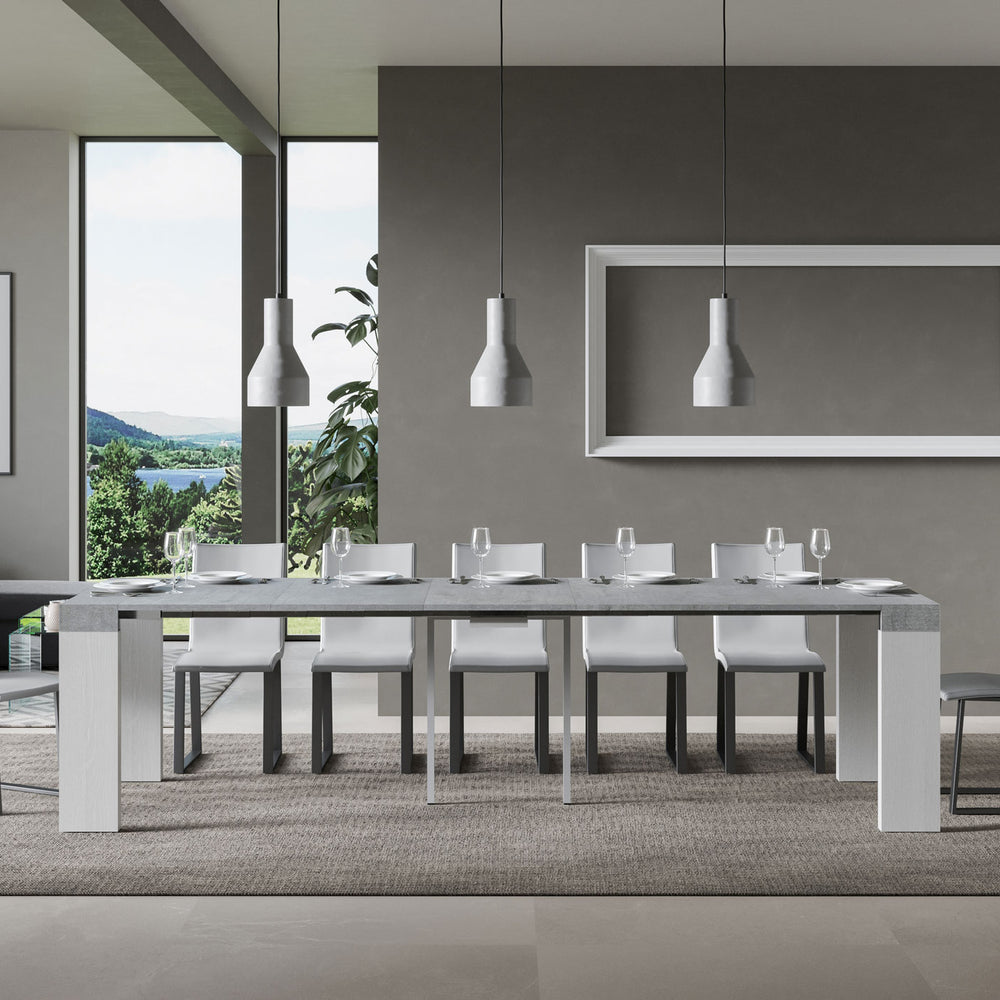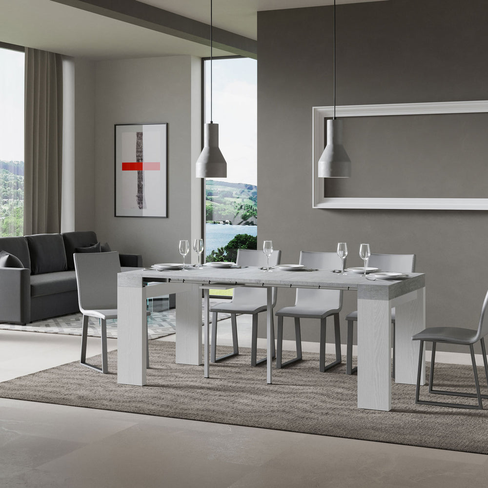 Consolle allungabile 90x40/300 cm Pianiga Mix piano Cemento - struttura Bianco Frassino