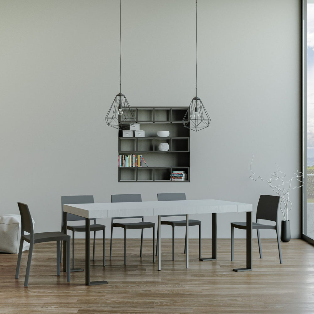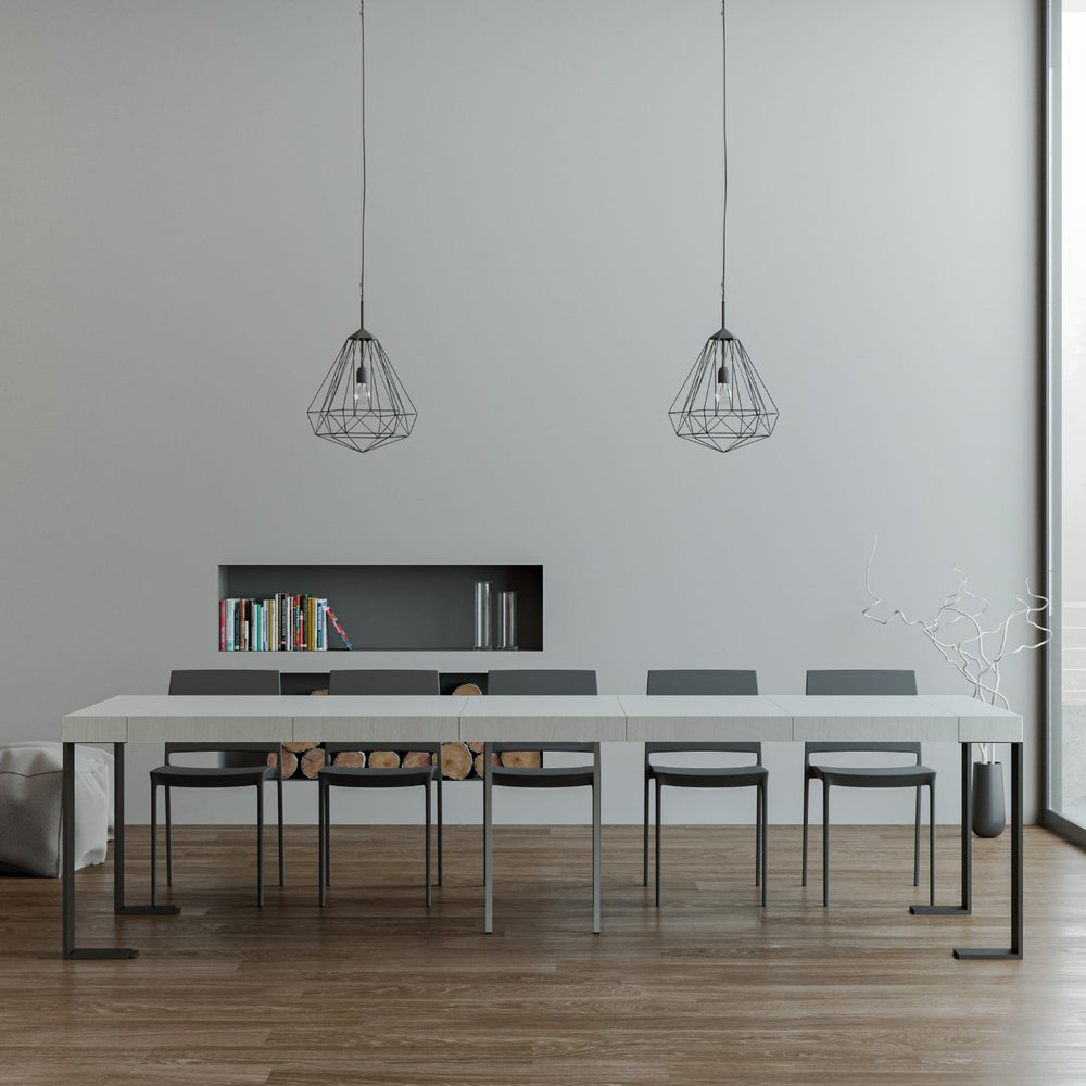 Consolle allungabile 90x40/300 cm Pieve Premium Bianco Frassino telaio Antracite