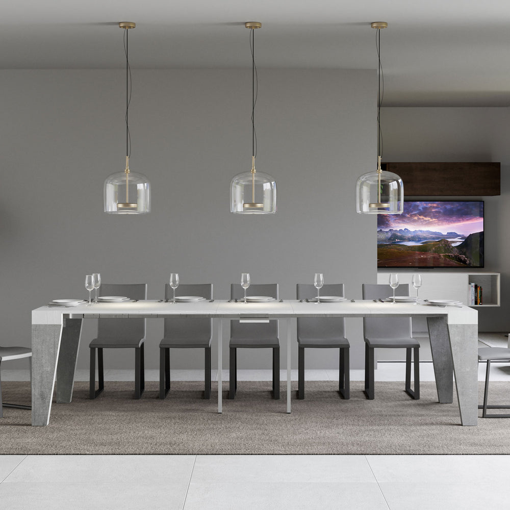 Consolle allungabile 90x40/300 cm Salzano Mix piano Bianco Frassino - struttura Cemento