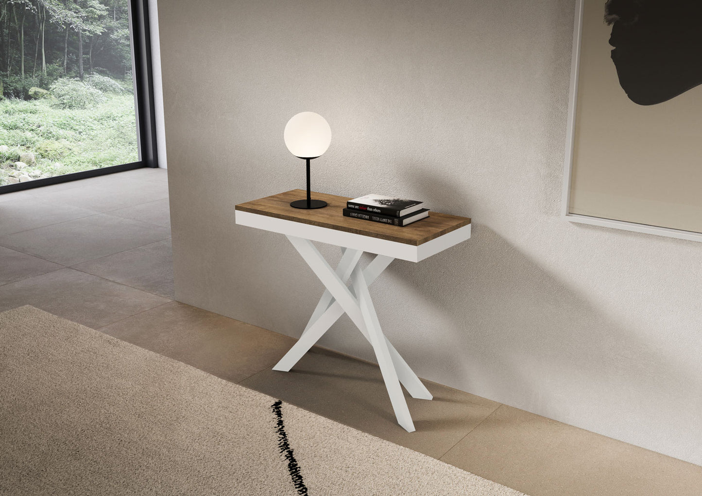 Consolle allungabile 90x40/196 cm Altavilla Small Evolution Noce gambe bianche