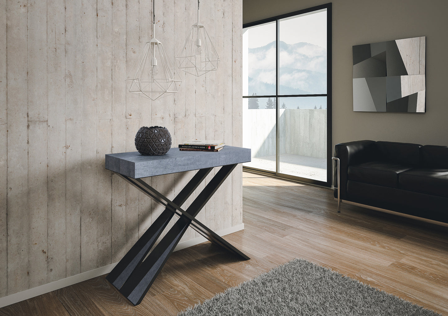 Consolle allungabile 90x40/300 cm Longarone Cemento telaio Antracite