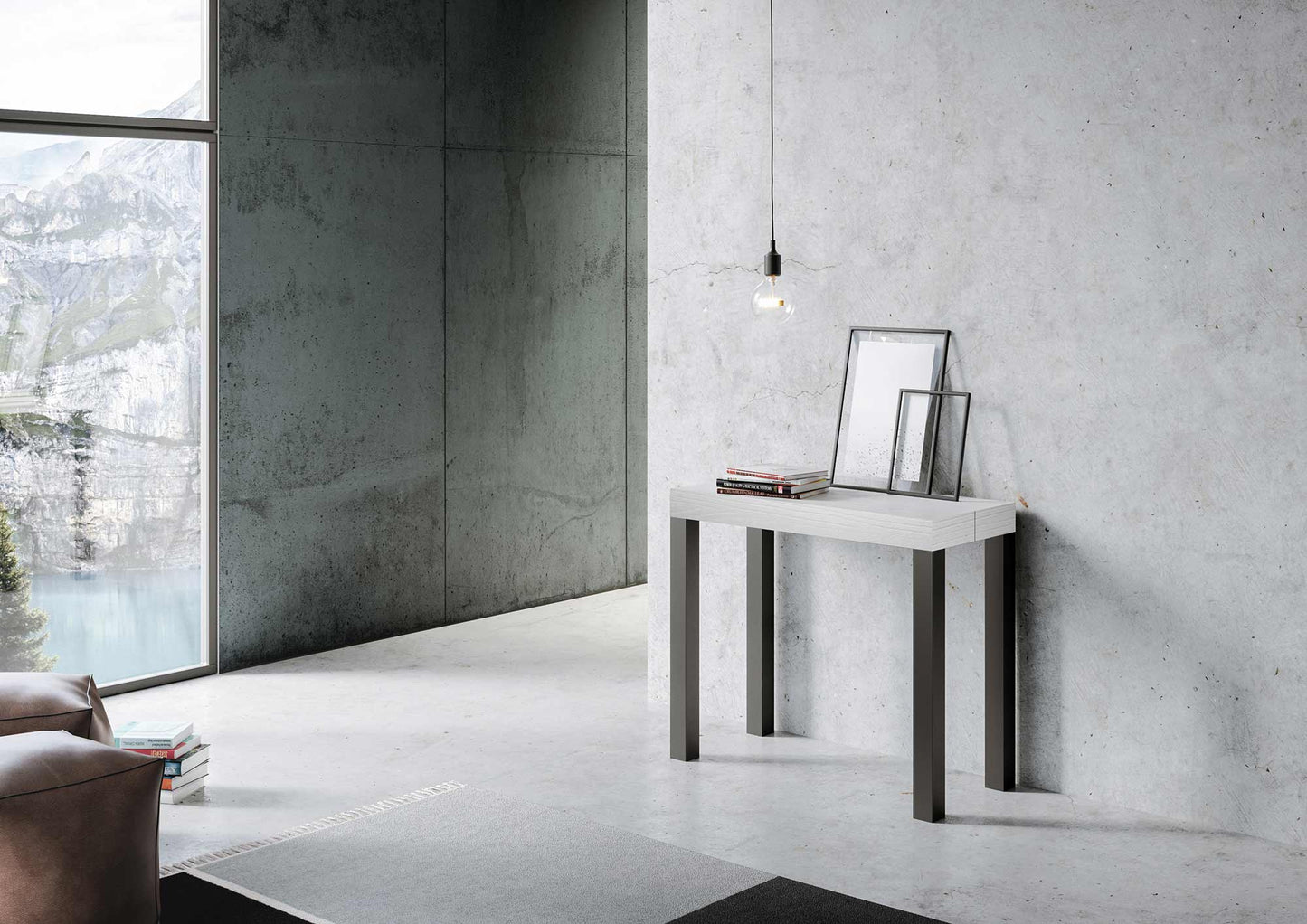 Consolle allungabile 90x40/196 cm Mira Small Cemento telaio Antracite