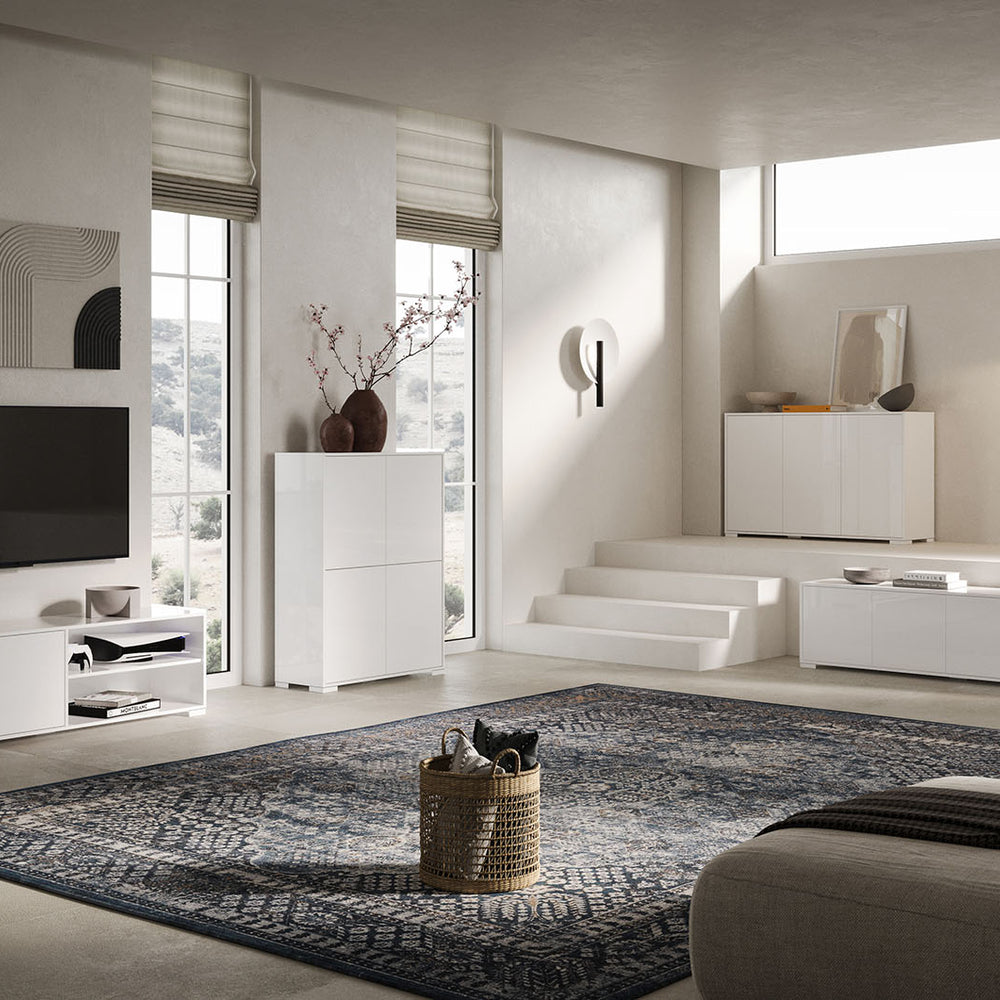 Credenza alta 4 ante 90x35x120 cm Ladinia bianco lucido