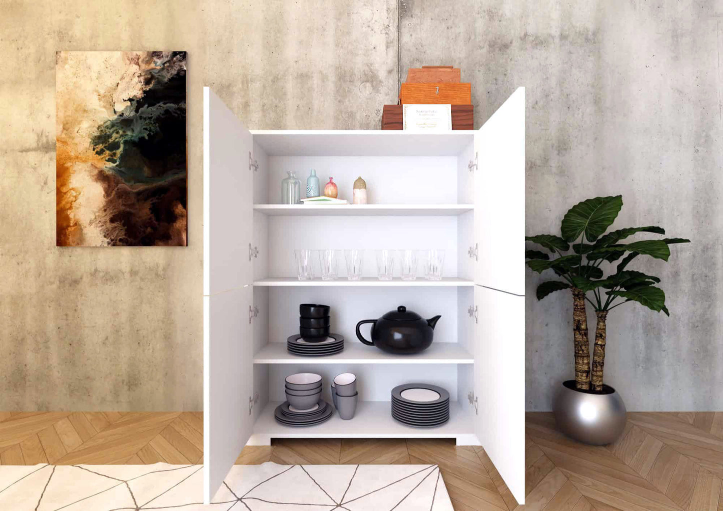 La credenza alta Ladinia, grazie alla sua struttura verticale, è ideale per ambienti con spazio limitato, poiché non occupa superficie a pavimento. I suoi ampi vani consentono di organizzare comodamente tutti i vostri oggetti. Il suo design contemporaneo e senza tempo la rende adatta a qualsiasi stile di arredamento. La credenza alta Ladinia con quattro ante, dotata di due ampi vani interni con ripiani centrali, è la soluzione ideale per mantenere in ordine e avere sempre tutto a portata di mano. La credenza alta viene fornita smontata. Prodotto Itamoby Made in Italy Caratteristiche: • Realizzata con pannelli ecologici di particelle di legno sp.15 mm • Ante con apertura push-pull • Piedini in resina H.4 cm • Certificazione FSC Dimensioni: • L.90 P.35 H.120 cm • Utile vani interni: L.87 H.26/28/28/26 cm