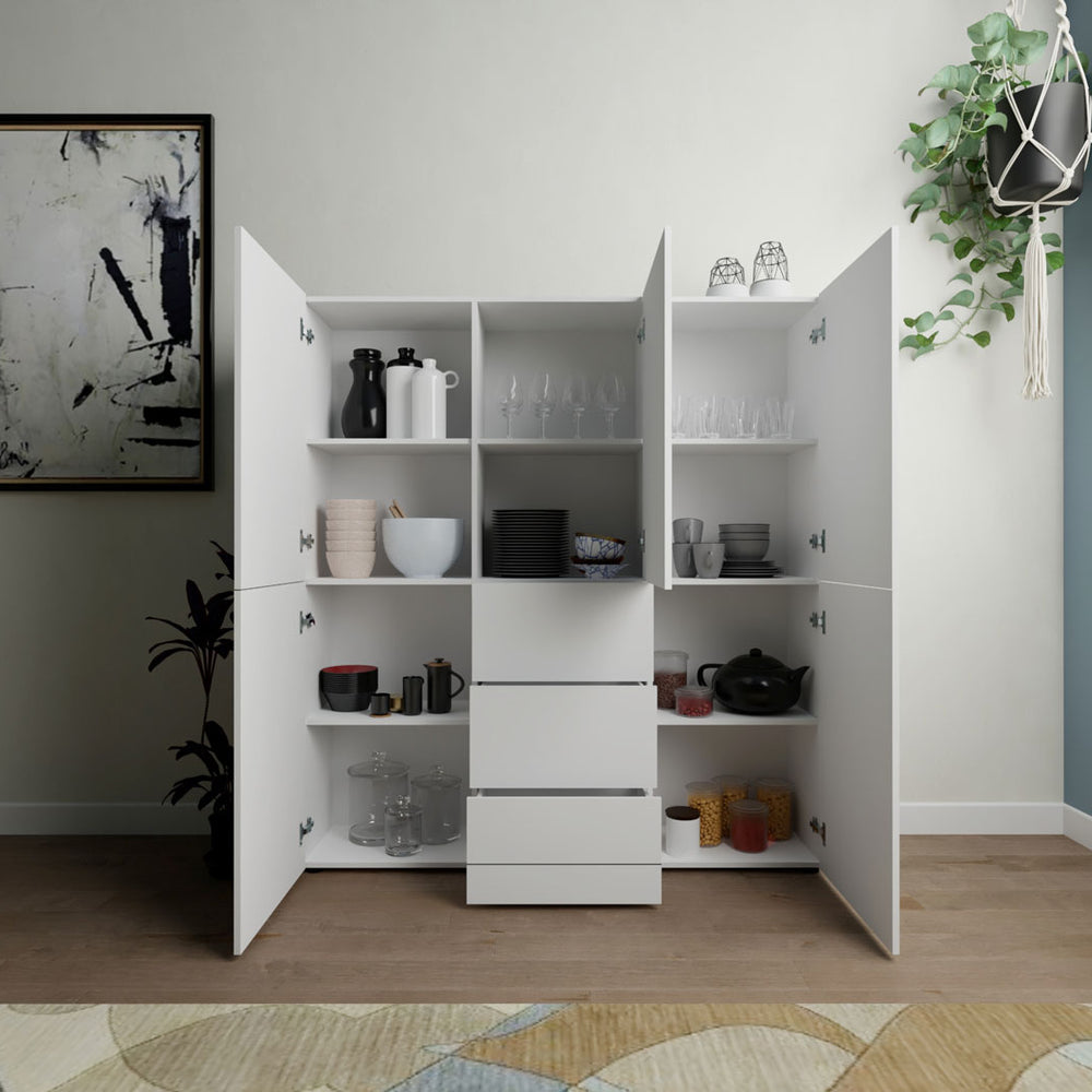 Credenza alta 5 ante/3 cassetti 150x35x165 cm Fassa bianco lucido
