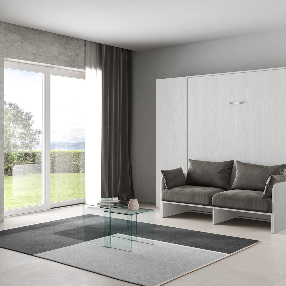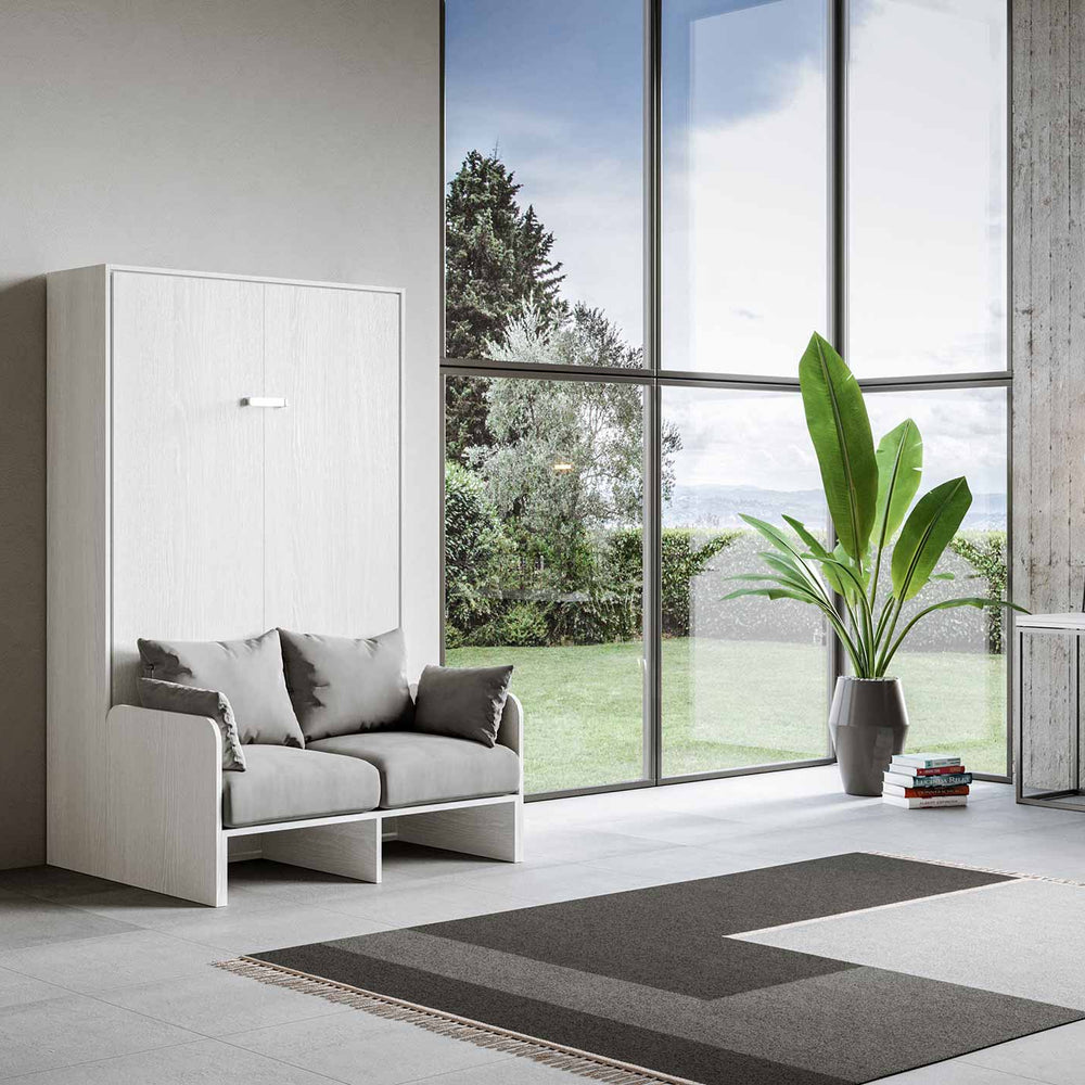 Letto francese verticale a scomparsa Breganze Sofà 140 con armadio 1 anta sx Bianco