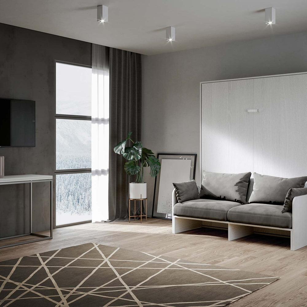 Letto a scomparsa 120 verticale Erbè Sofà con colonna Bianco Frassino