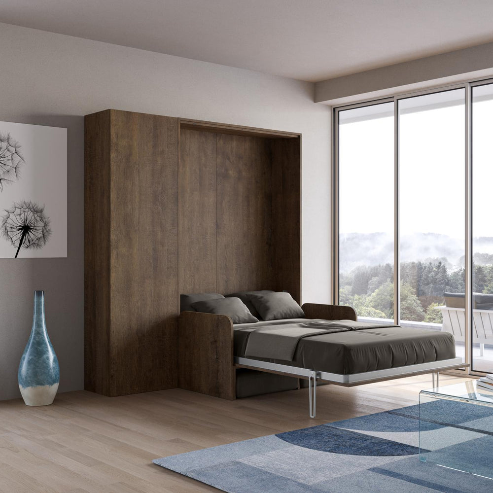 Letto a scomparsa 120 verticale Erbè Sofà con colonna Noce
