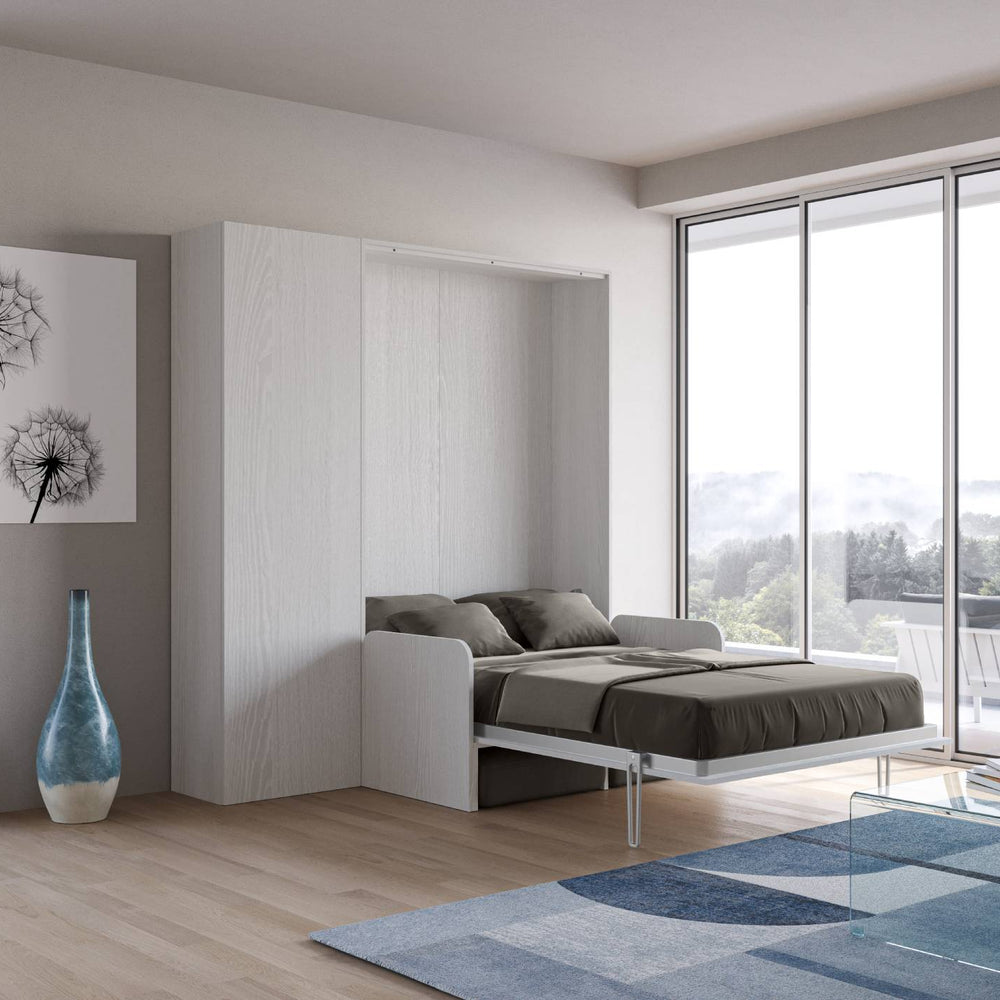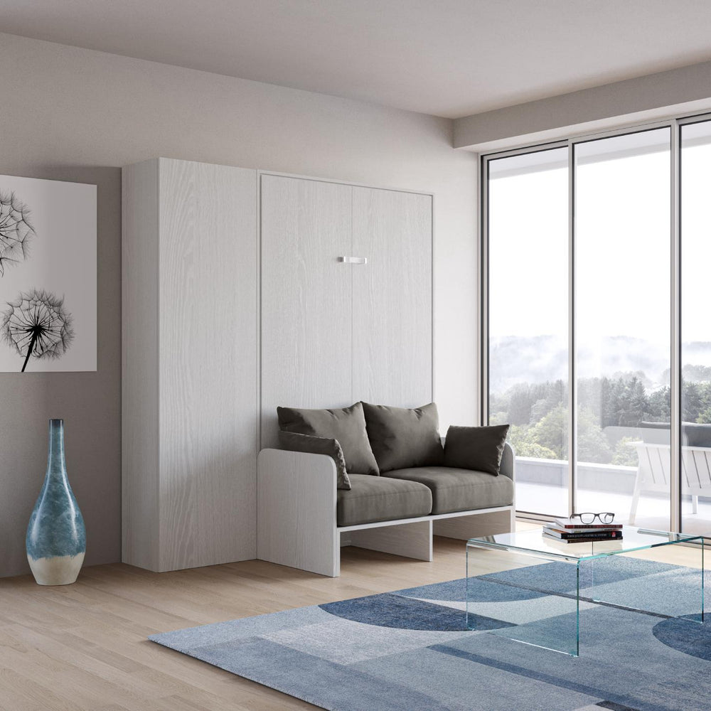 Letto a scomparsa 140 verticale Erbè Sofà con colonna Bianco Frassino
