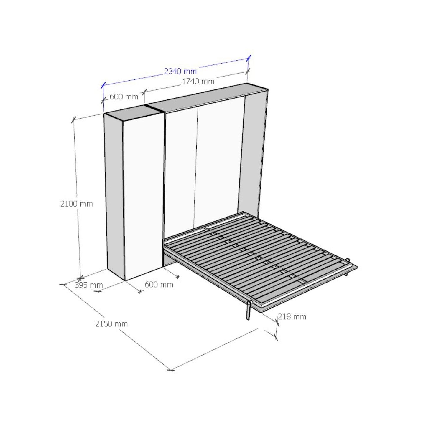 Letto a scomparsa 160 verticale Erbè con colonna Bianco Frassino