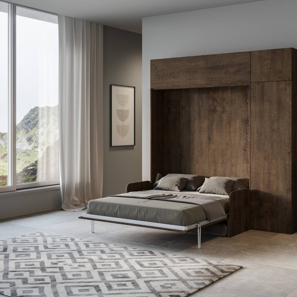 Letto a scomparsa 160 verticale Erbè Sofà con colonna e pensili Noce