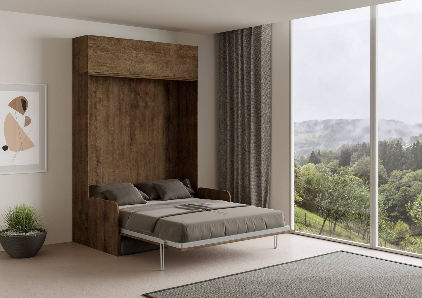Letto a scomparsa 160 verticale Erbè Sofà con pensile vasistas Noce