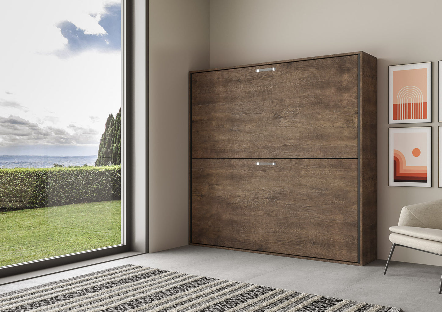 Letto a scomparsa doppio orizzontale Ferrara con materassi Noce