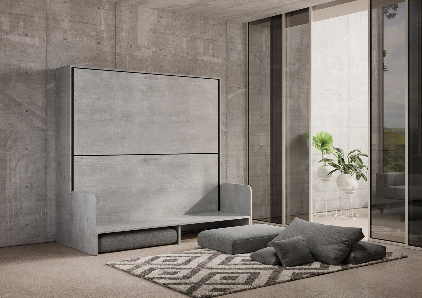 Letto a scomparsa doppio orizzontale Ferrara Sofà Cemento