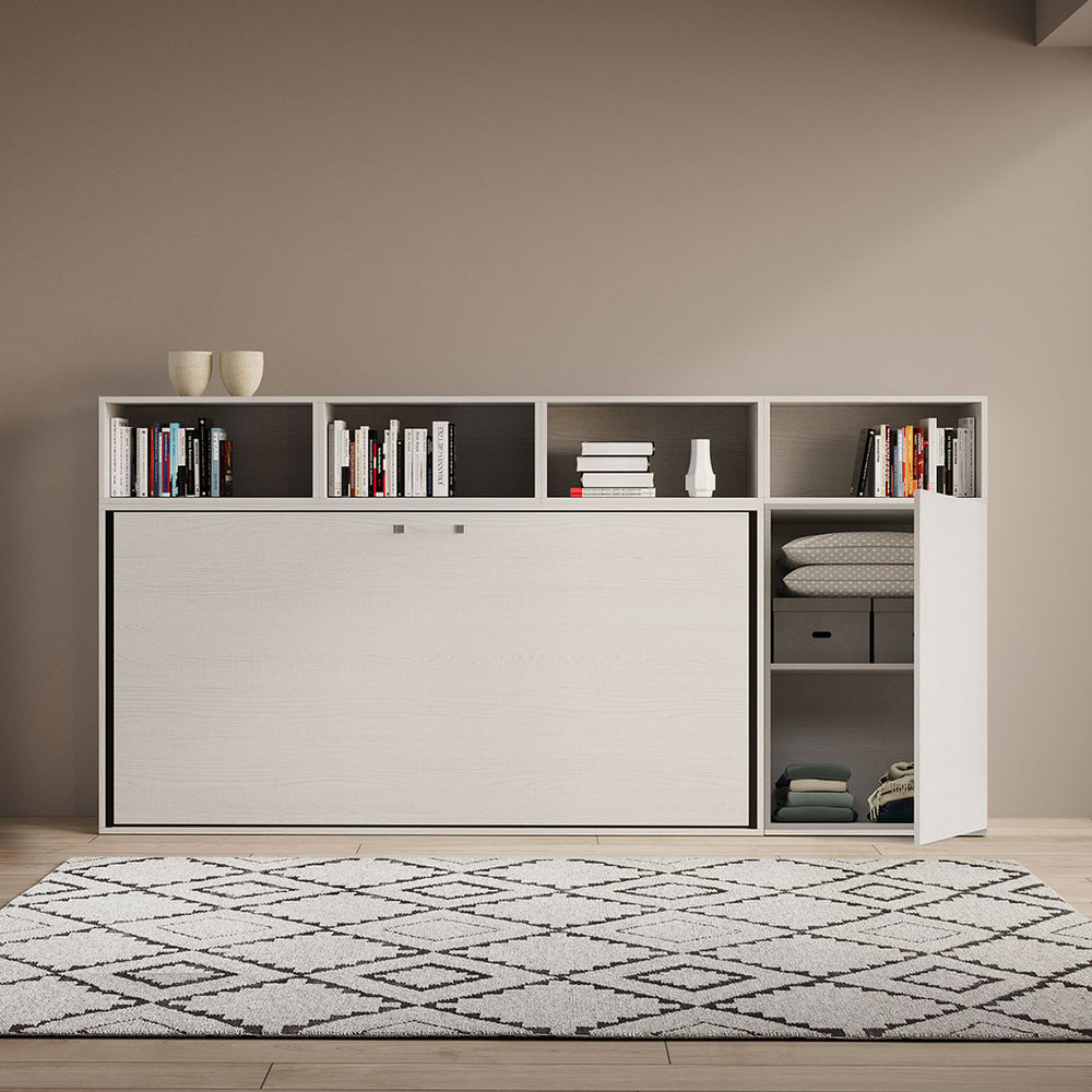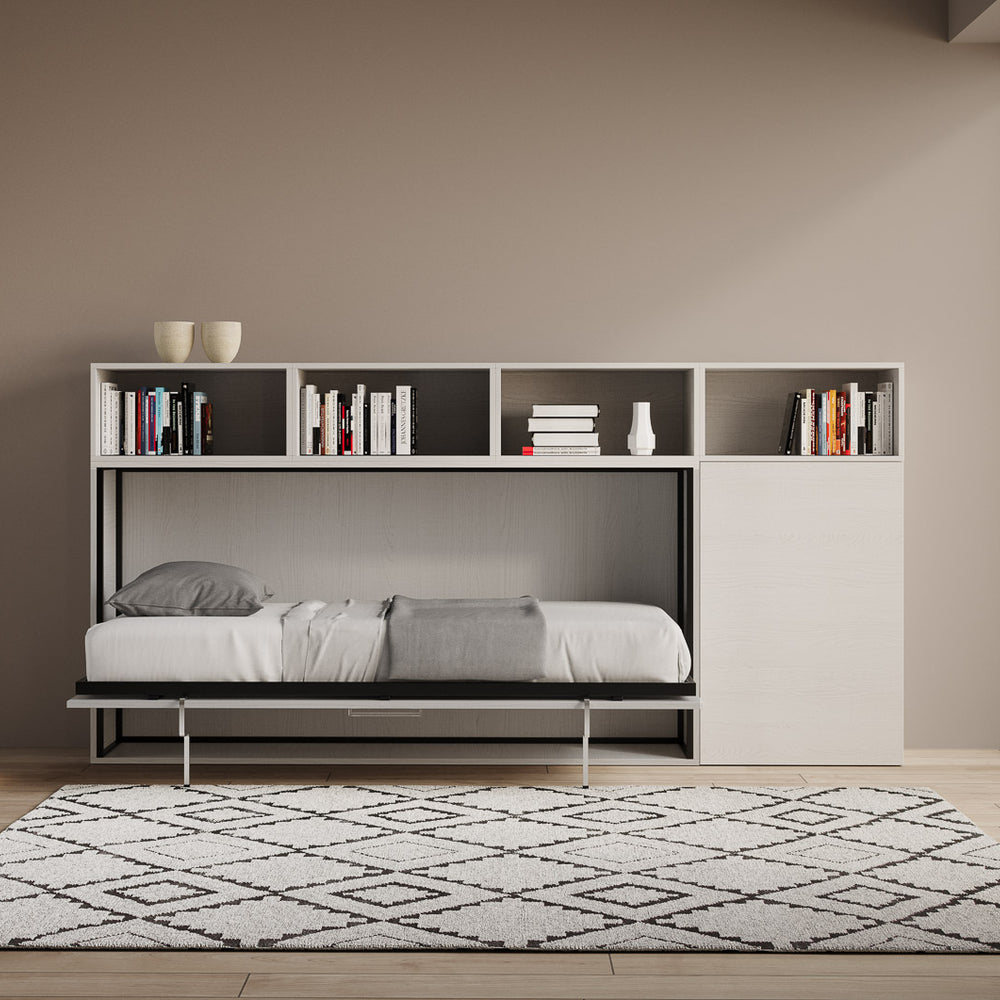 Letto a scomparsa singolo orizzontale Ferrara composizione A Bianco Frassino