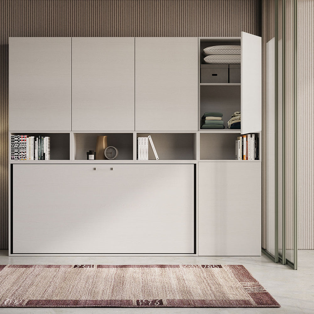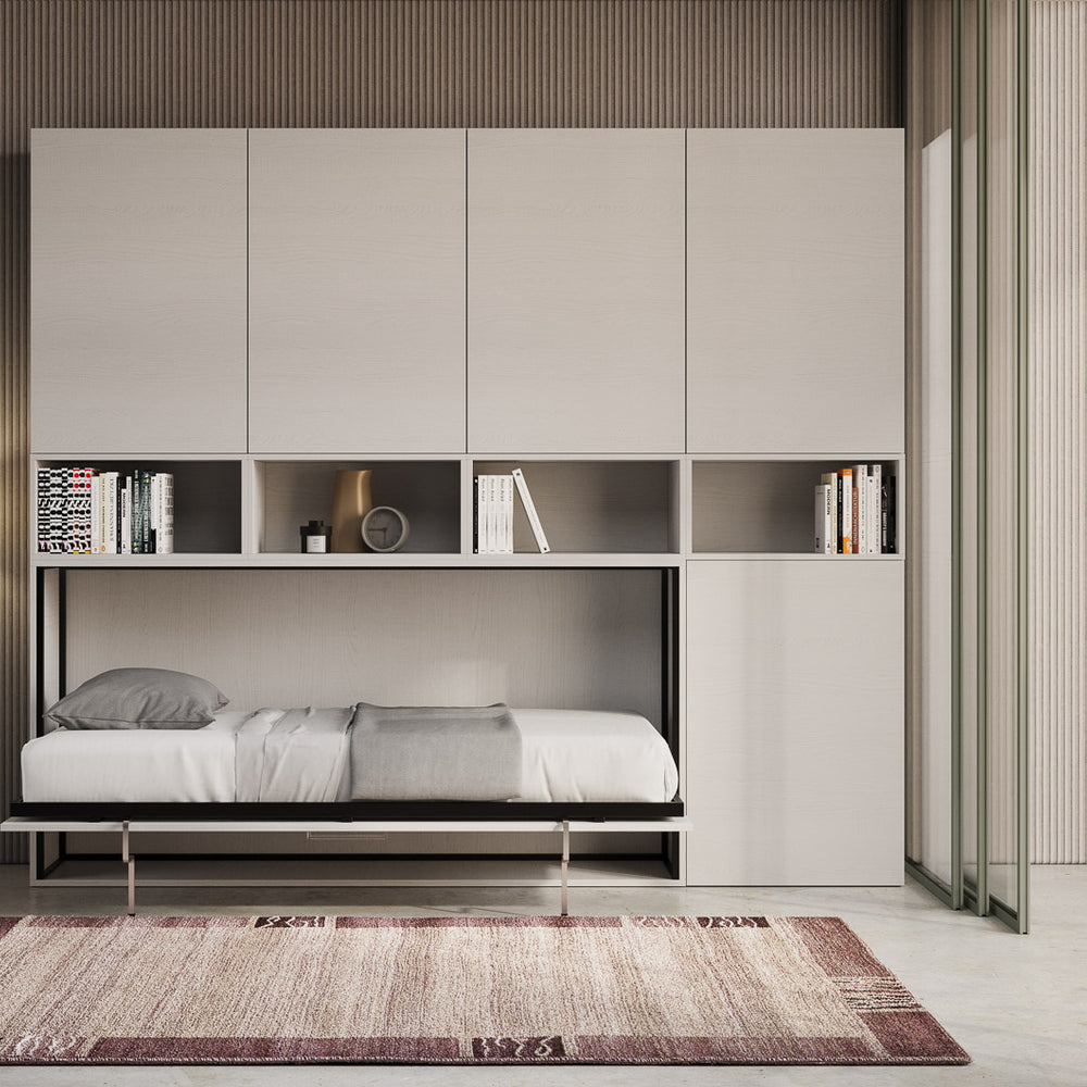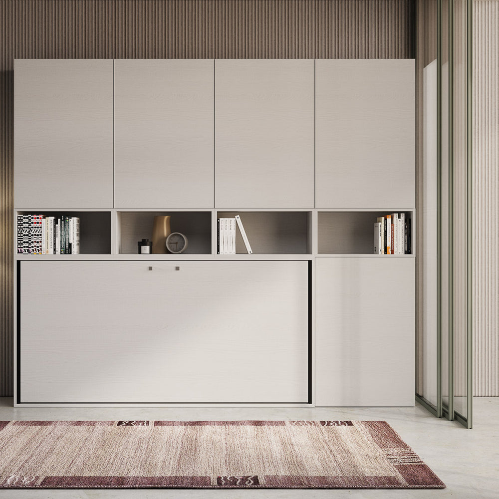 Letto a scomparsa singolo orizzontale Ferrara con materasso composizione C Bianco Frassino
