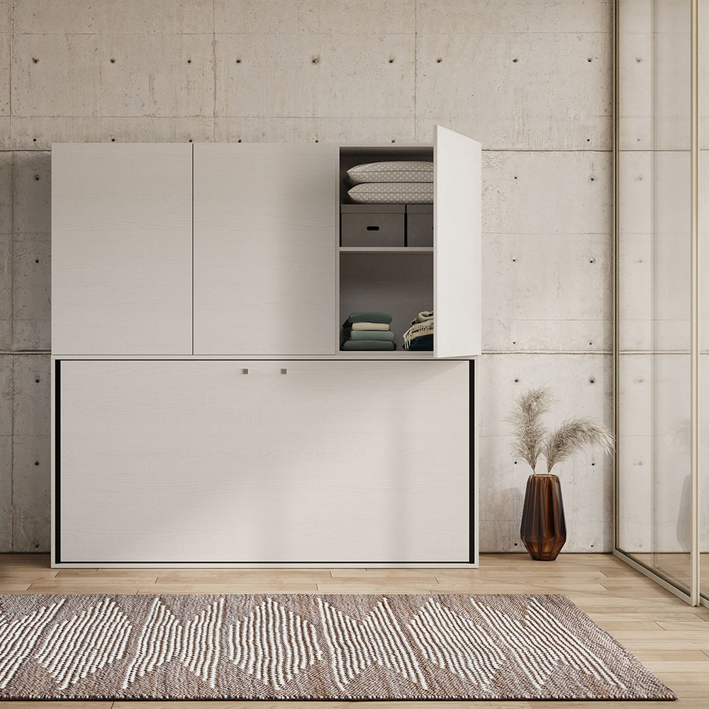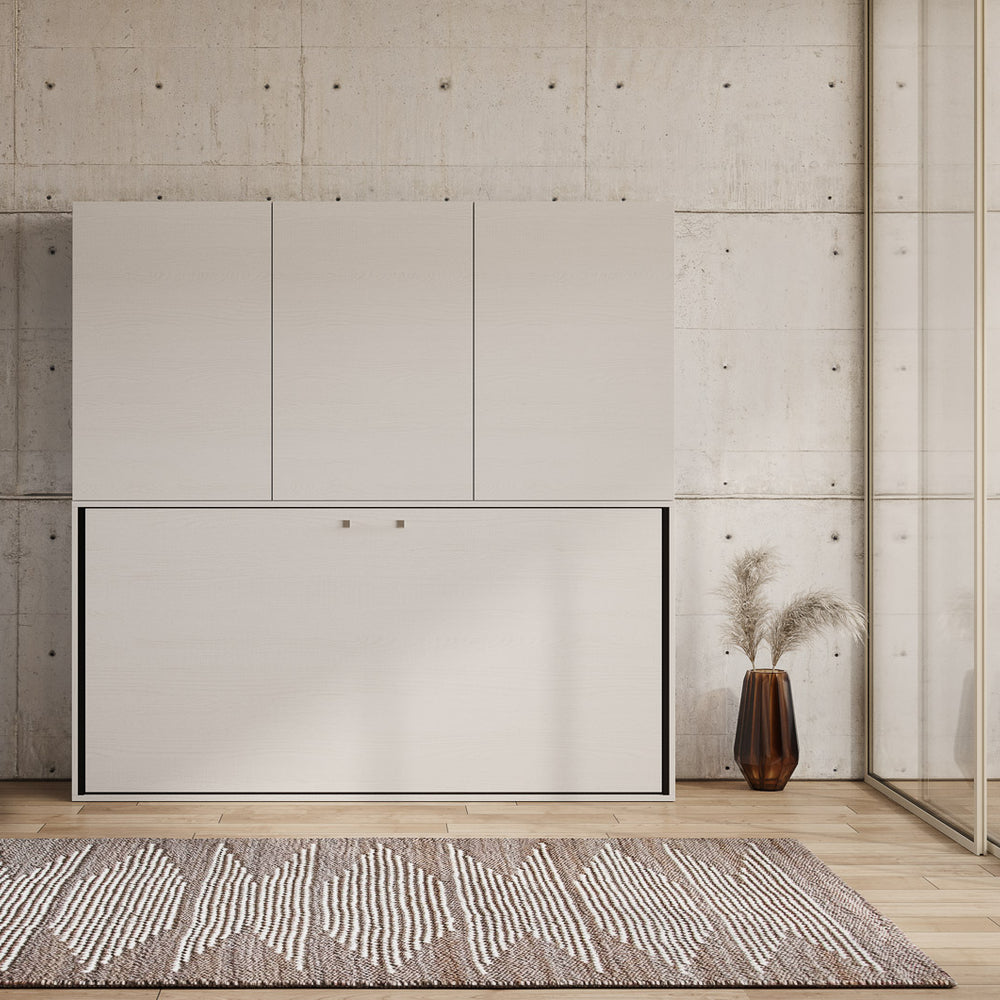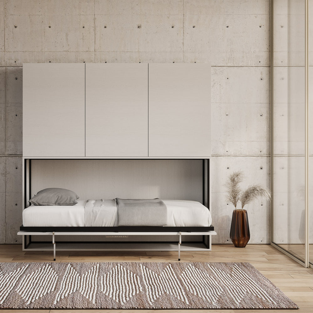 Letto a scomparsa singolo orizzontale Ferrara con materasso composizione D Bianco Frassino