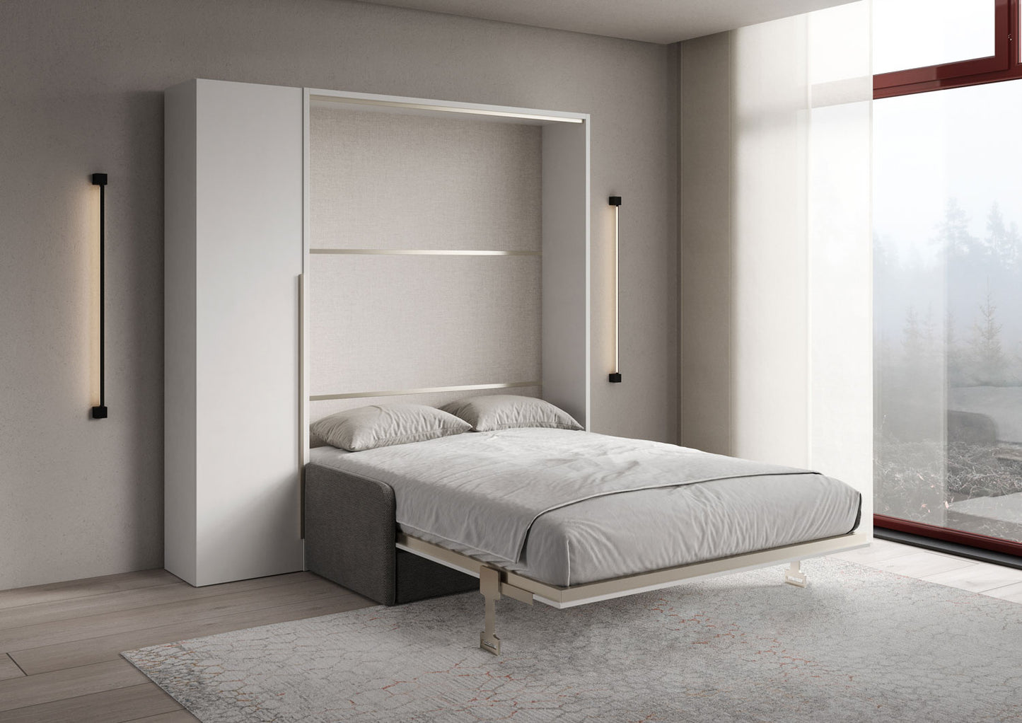 Letto francese verticale a scomparsa Breganze Sofà 140 con divano e armadio 1 anta sx Bianco