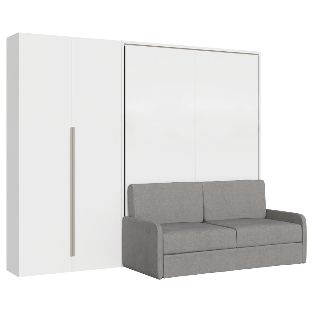 Letto matrimoniale verticale a scomparsa Breganze Sofà 160 con divano e armadio sx 2 ante Bianco