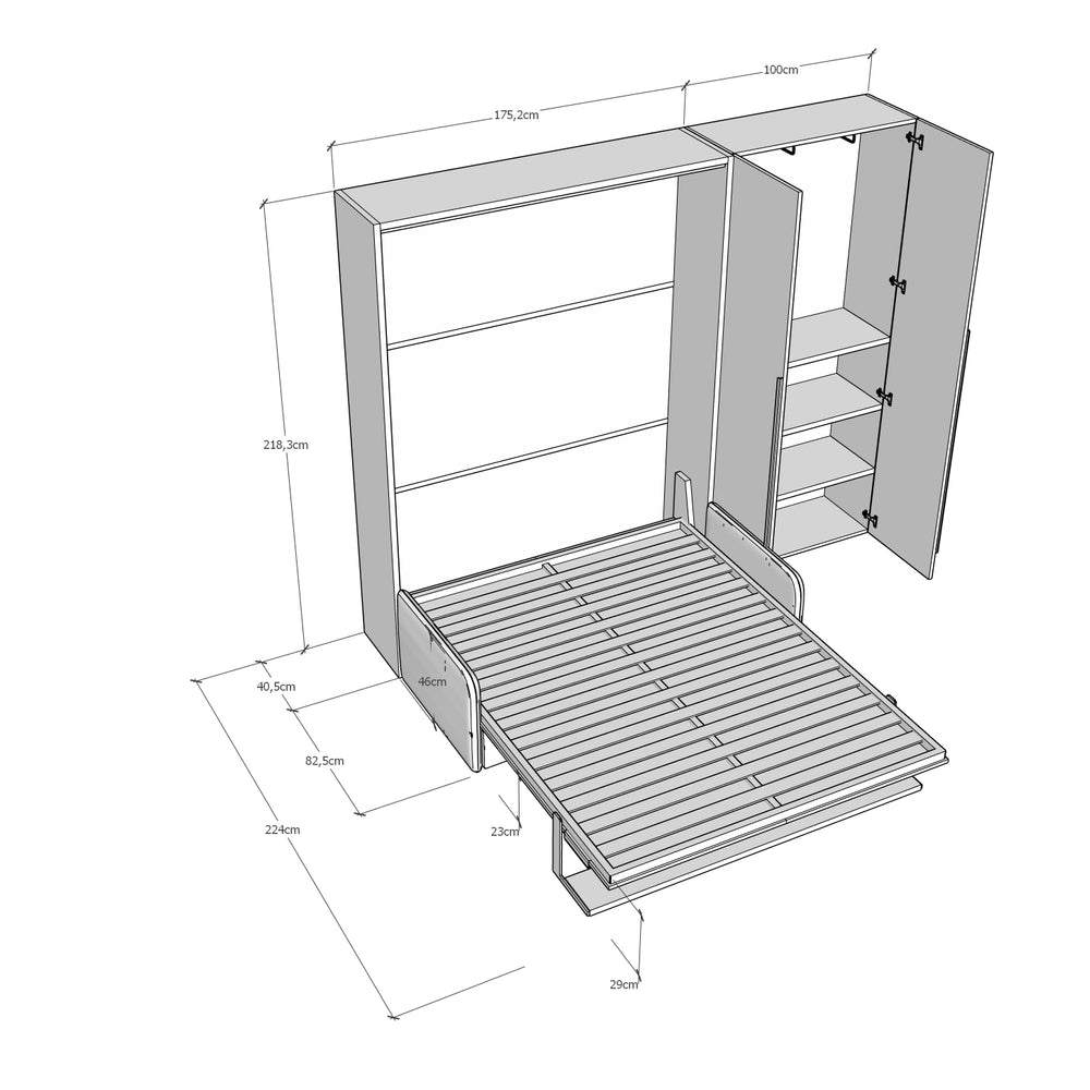 Il letto a scomparsa verticale matrimoniale Breganze Sofà, con divano e mensola integrati, reinventa il concetto di spazio. Eleganza, funzionalità e design si fondono in Breganze Sofà, il letto a scomparsa verticale matrimoniale che trasforma la zona giorno in zona notte in poche semplici mosse. Composizione proposta con un pratico e capiente armadio due ante, posizionabile a sinistra del letto, che permette di riporre al proprio interno tutto il necessario, per una camera da letto sempre in ordine. Realizzato con materiali di alta qualità, Breganze Sofà è la soluzione ideale per chi desidera ottimizzare lo spazio senza rinunciare al design. Il meccanismo di apertura e chiusura, silenzioso e fluido, è progettato per garantire la massima sicurezza e facilità d'uso. Con Breganze Sofà, il tuo riposo sarà un'esperienza unica e indimenticabile.Struttura del letto realizzata con pannelli di particelle di legno nobilitato sp.28 mm dotata di piedini livellatori regolabili.Struttura armadio realizzata con pannelli di particelle di legno nobilitato sp.18 mm. L'armadio è dotato di tre ripiani, due tubi appendiabiti estraibili e piedini regolabili.L'installazione del divano è semplice e intuitiva, bastano solo quattro viti per l’ancoraggio alla struttura del letto a scomparsa. Quando il letto è aperto, i cuscini dello schienale si sistemano in testa, mentre la seduta si sposta adattandosi perfettamente allo spazio disponibile. Colore rivestimento divano come in foto. Caratteristiche tessuto: idrorepellente, irrestringibile, smacchiabile e resistente allo sfregamento e alla luce.La discesa del letto è assistita da pistoni a gas e agevolata dalla presenza delle maniglie. Rete a doghe di faggio con struttura in ferro rinforzato, verniciato a polvere epossidica colore alluminio goffrato, con piedi di appoggio integrati e cinghie ferma materasso.Materasso non compreso. Dimensioni consigliate del materasso: L.160 P.200 max H.23 cm, peso tra 25 e 30 kg. Portata massima letto kg 200.ATTENZIONE:Il letto a scomparsa Breganze Sofà arriva smontato completo di istruzioni di assemblaggio. Il montaggio prevede una difficoltà elevata e necessita di due persone esperte per eseguirlo. È obbligatorio il fissaggio a muro.Dimensioni:Letto chiuso: L.275,2 P.123 H.218,3 cmLetto aperto: L.275,2 P.224 H.218,3 cmDivano: L.175 P.82,5 H.76 cmMensola: L.167,4 P.20 Sp.2,8 cmAltezza piano rete da terra: 29 cmAltezza massima materasso: 23 cmArmadio: L.100 P.40,5 H.218,3 cmMade in ItalyProdotto