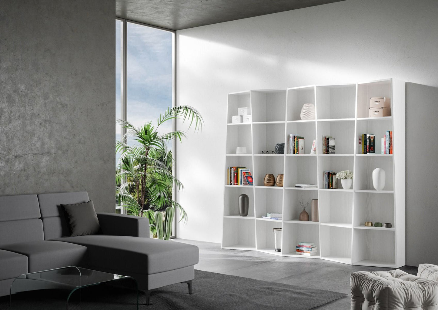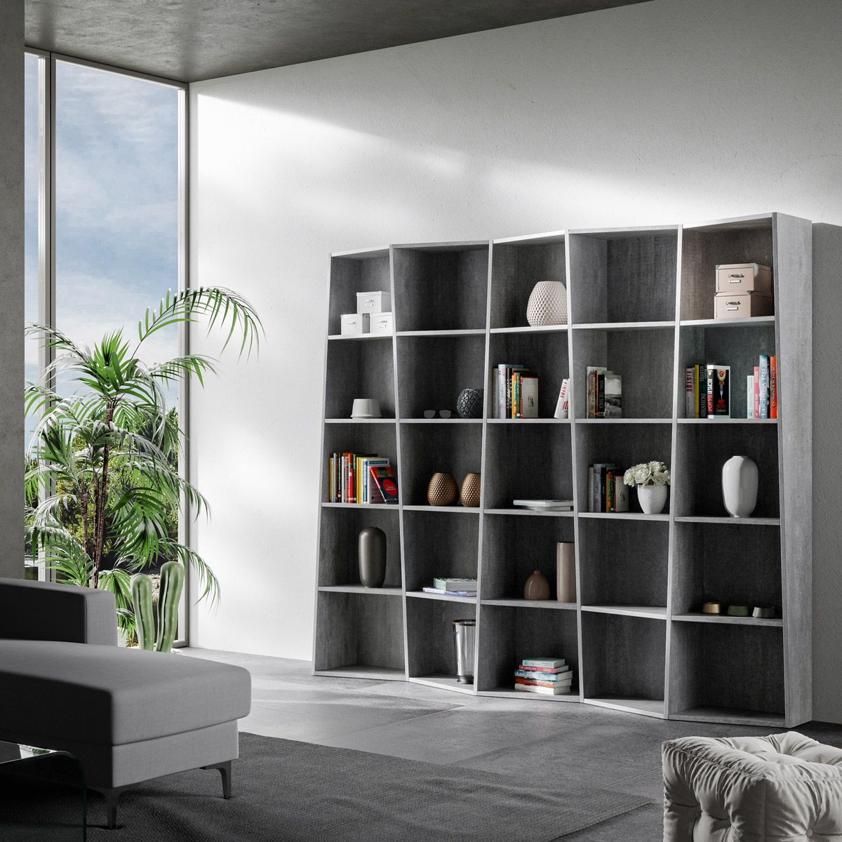 Libreria Cerea 7 elementi Cemento