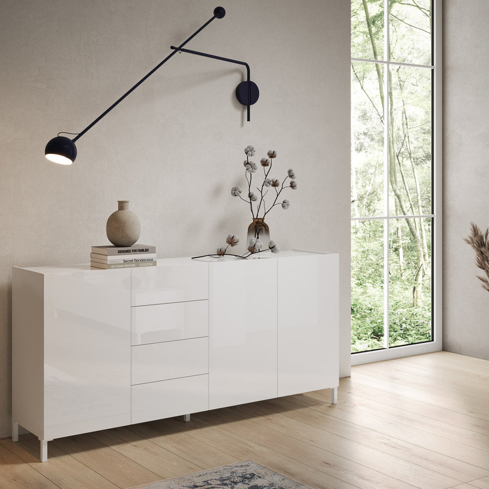Madia 3 ante/4 cassetti 174x40x84 cm Valzella bianco lucido