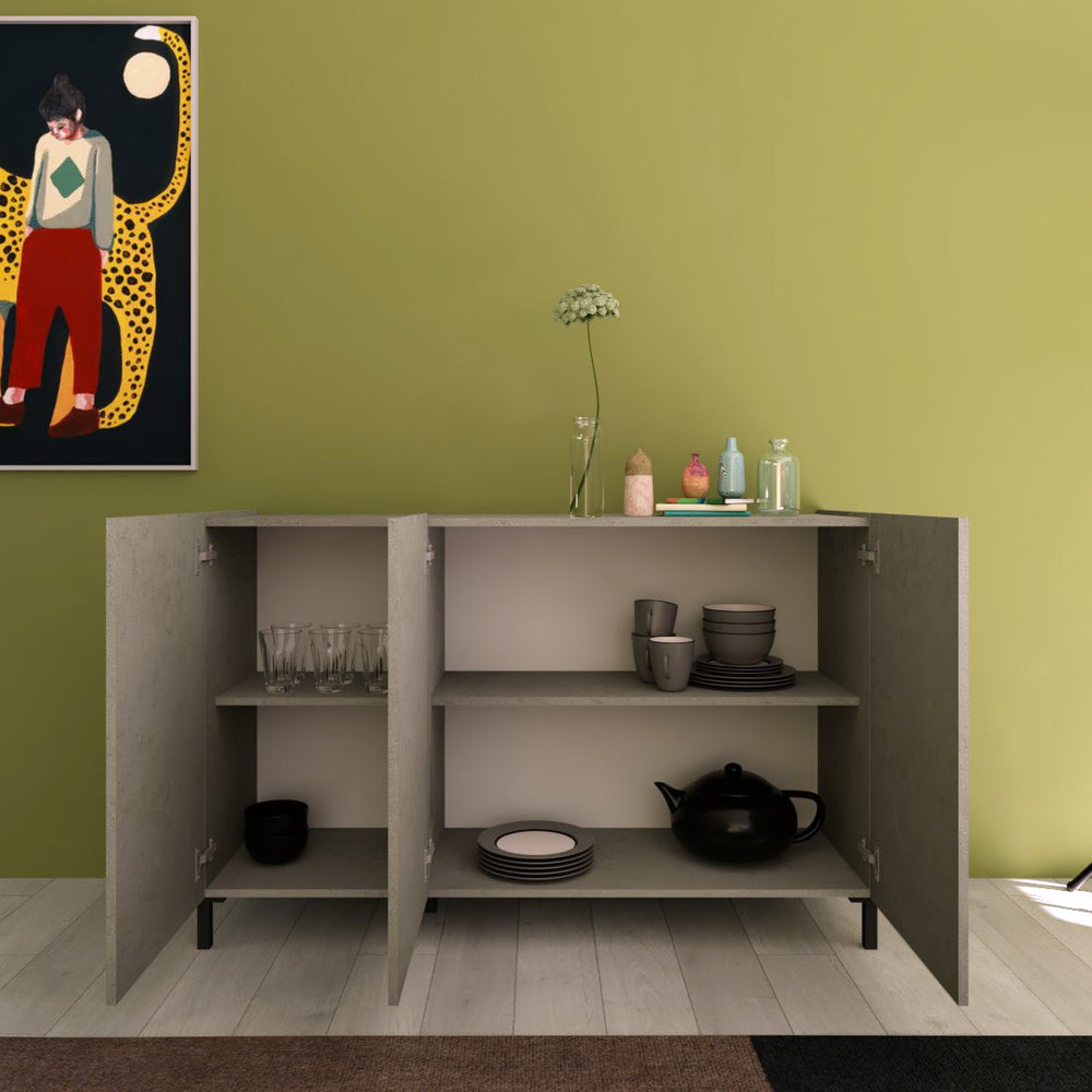 La madia Valzella, mobile dal design contemporaneo e senza tempo, si adatta facilmente all'arredamento della tua casa grazie alla sua versatilità e funzionalità. Sobria e lineare, è ideale per organizzare diverse aree della tua abitazione. La madia Valzella con tre ante, dotata di due ampi vani interni con ripiani centrali, è la soluzione ideale per mantenere in ordine e avere sempre tutto a portata di mano. La madia viene fornita smontata. Prodotto Itamoby Made in Italy Caratteristiche: • Realizzata con pannelli ecologici di particelle di legno sp.15 mm • Ante con apertura a battente • Piedini regolabili in resina H.10 cm • Certificazione FSC Dimensioni: • L.130 P.40 H.84 cm • Utile vano anta singola: L.41 H.34 cm • Utile vano anta doppia: L.84 H.34 cm