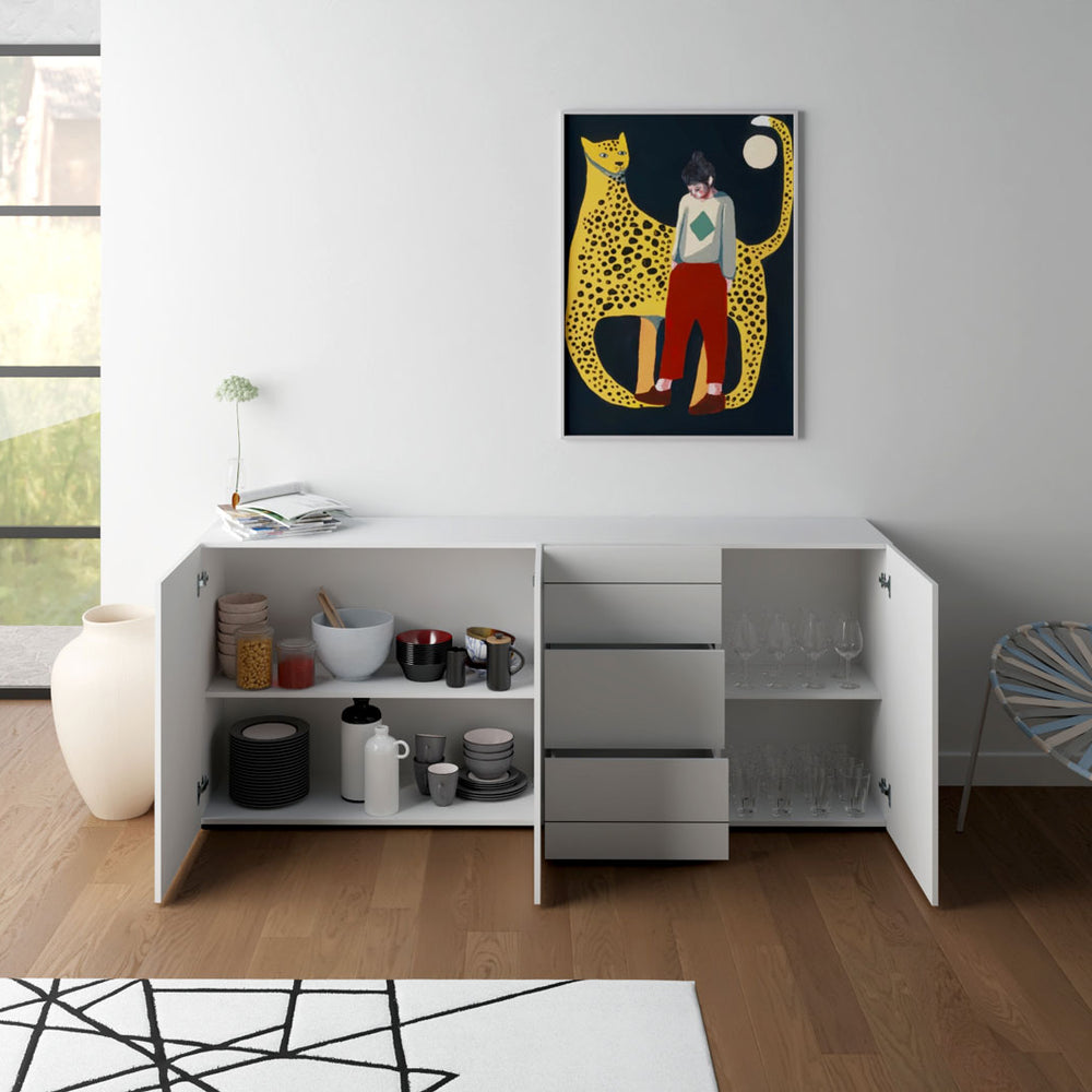 Madia 3 ante/3 cassetti 200x40x83,5 cm Fassa bianco lucido