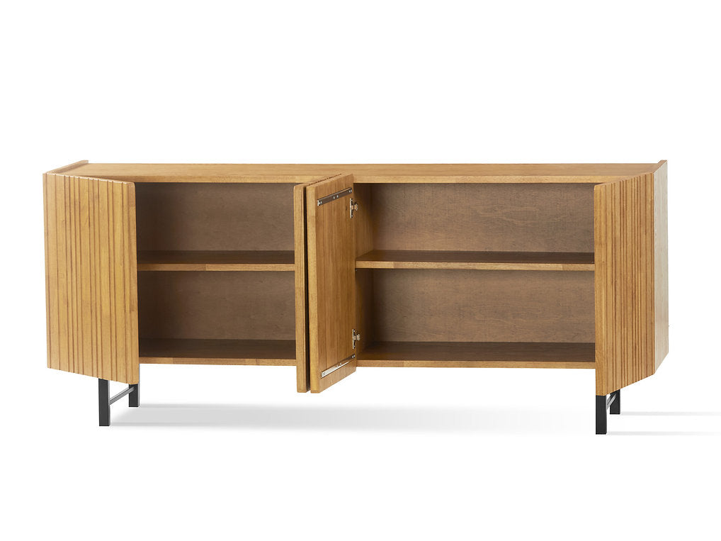 Madia Possagno con piedi a V è interamente realizzata in vero legno massello, sia l'intera struttura sia le ante frontali è un mobile ideale per arredare il soggiorno e la sala da pranzo, dal design moderno, la madia, sfrutta lo spazio verticale per contenere ed ordinare in maniera funzionale gli oggetti di casa, trasformandosi all'occorrenza in dispensa, mobile tv e consente nel suo piano superiore di esporre gli oggetti più cari. Può essere personalizzata con i diversi piedini a disposizione che oltre a modificarne l'estetica ne cambino anche l'altezza globale. E' realizzata con 100% legno massello, la sua caratteristica estetica principale è il taglio obliquo delle ante, rafforzato anche dall'inclinazione delle venature del legno, particolarità inusuali che conferiscono a questa madia un marcato carattere personale e distintivo. Altra carattere distintivo è il top a vassoio, creato dal rialzo dei fianchi e delle ante, che contribuisce a rendere questa madia particolare nella sua semplicità. Dimensioni: Lunghezza 180 cm; Profondità 45 cm; Altezza 76 cm Peso: 62,5 kg