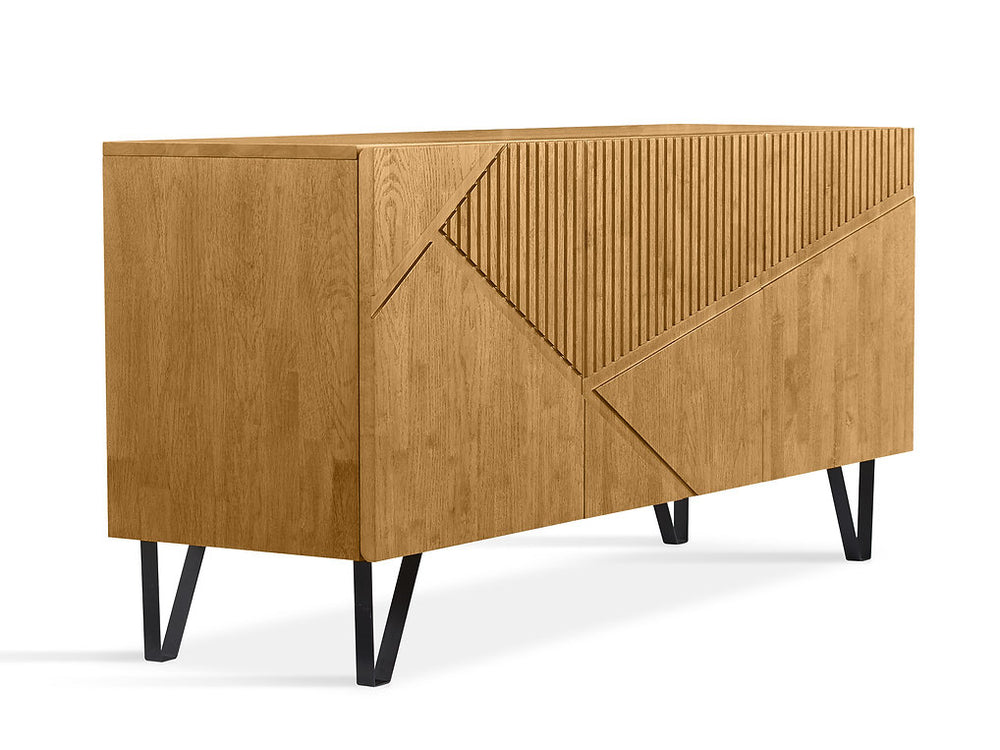 Madia Silea con piedi Quadro è interamente realizzata in vero legno massello, sia l'intera struttura sia le ante frontali è un mobile ideale per arredare il soggiorno e la sala da pranzo, dal design moderno, la madia, sfrutta lo spazio verticale per contenere ed ordinare in maniera funzionale gli oggetti di casa, trasformandosi all'occorrenza in dispensa, mobile tv e consente nel suo piano superiore di esporre gli oggetti più cari. Può essere personalizzata con i diversi piedini a disposizione che oltre a modificarne l'estetica ne cambino anche l'altezza globale. La caratteristica principale è il mix di pieni e vuoti e tagli linee e design delle ante, caratterizzato dal mix tra linear ed elaborato che la lavorazione a "cannettatura" conferisce al frontale di questa madia. La delimitazione di queste diverse aree del frontale è marcata da scanalature oblique che trasmettono un senso di dinamicità e personalità unica a questa madia. Dimensioni: Lunghezza 160 cm; Profondità 45 cm; Altezza 75 cm Peso: 61,5 kg