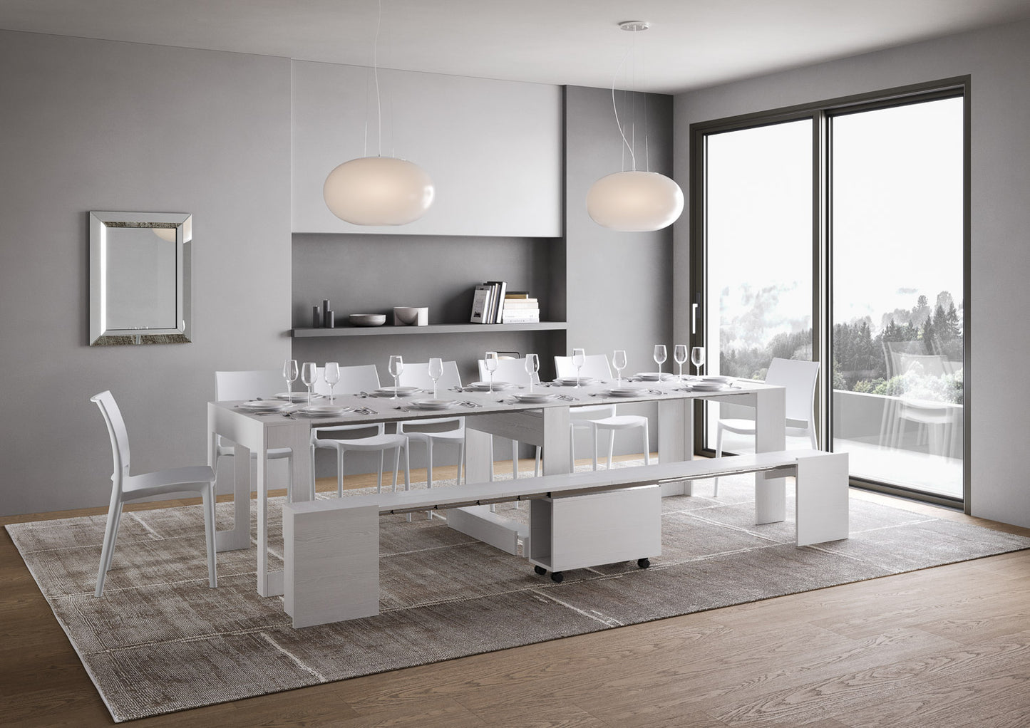 Consolle allungabile Spinea con Panca inferiore Bianco Frassino