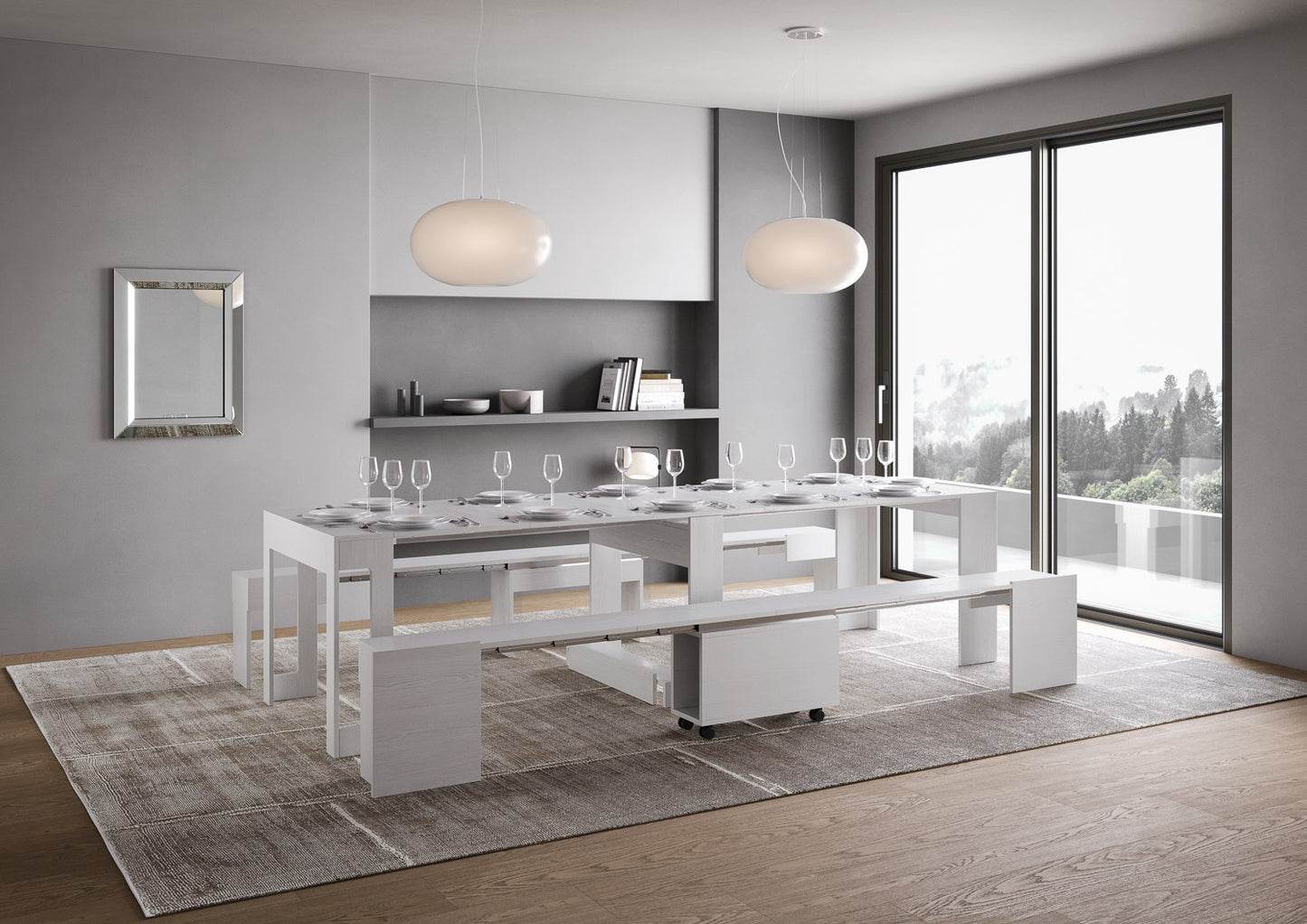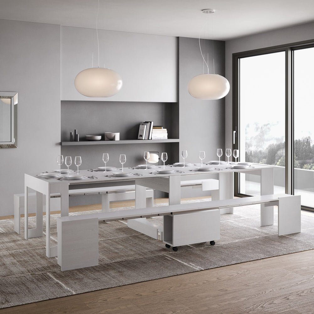 Consolle allungabile Spinea con Panca inferiore e superiore Bianco Frassino