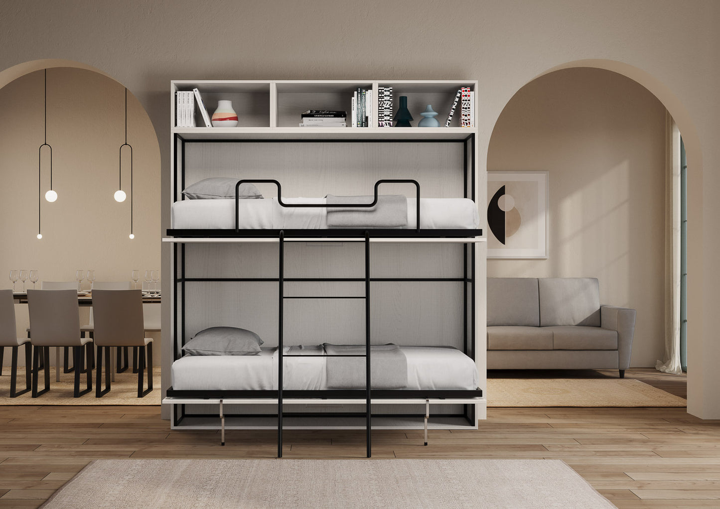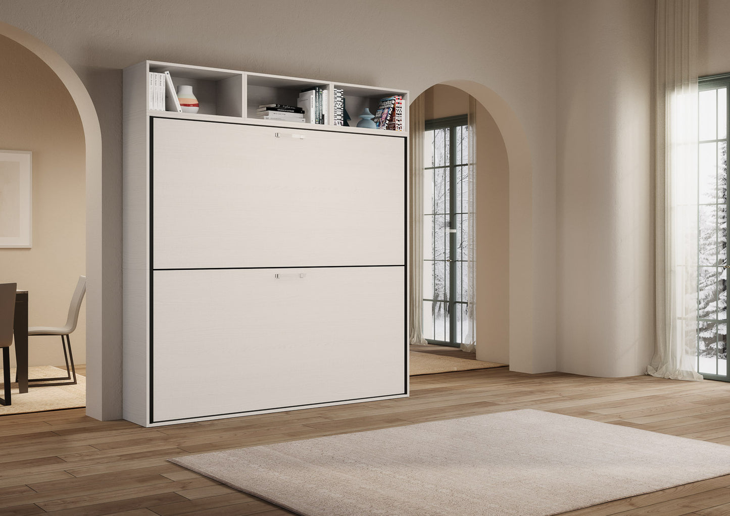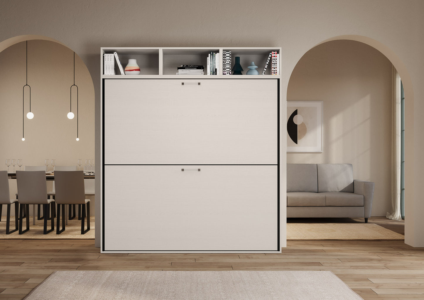 Letto a scomparsa doppio orizzontale Ferrara composizione L Bianco Frassino