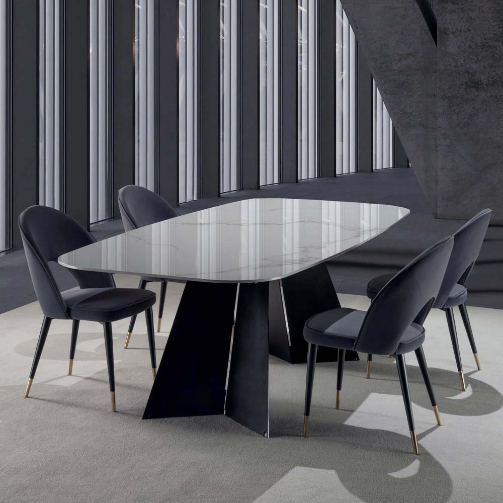 Careg serie Regis Tavolo Regnum Piano in Gres porcellanato marmo bianco carrara lucido 200x100 cm Struttura Acciaio verniciato nero