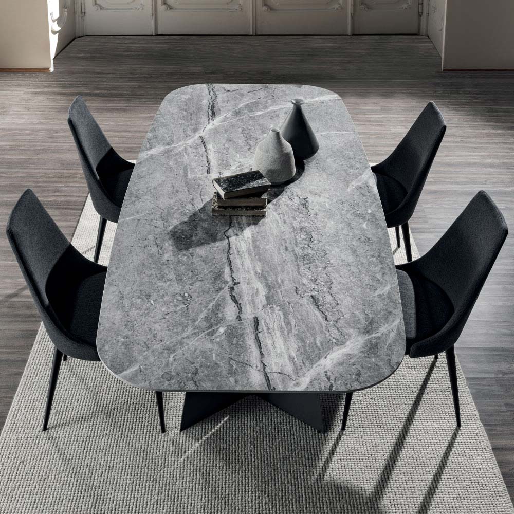 Careg serie Regis Tavolo Regnum Piano in Gres porcellanato marmo grey lucido 238x100 cm e Struttura Acciaio verniciato nero