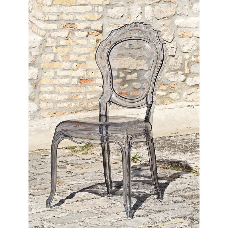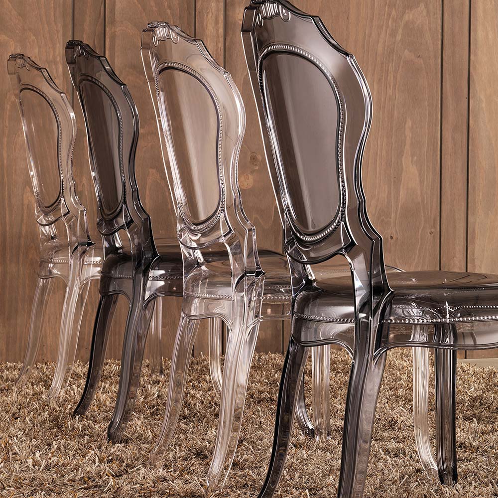 Sedia in policarbonato fumè dal design moderno ed elegante. Made in Italy. Misure: Altezza 97cm Altezza Seduta 46cm Larghezza 53cm Profondità 55cm. Avvertenze:Data la particolare tecnologia di questo articolo il prodotto potrebbe presentare dei segni superficiali, queste particolarità non riducono le caratteristiche di estetica e resistenza del prodotto. Pulire con panno morbido, non abrasivo, imbevuto di sola acqua. Non usare solventi, sgrassanti, alcooSedia in policarbonato fumè. Una confortevole poltroncina in policarbonato trasparente di design: l'ideotipo del barocco rivisitato per stupire, emozionare, affascinare. La poltroncina è il più coraggioso esempio al mondo d’iniezione del policarbonato in un unico stampo. Prodotto in Italia da un'azienda di eccellenze lombarde. Nonostante l’immagine cristallina, la sedia è stabile e resistente, a prova di urti e agenti atmosferici. Misure: Altezza: 97 cm Larghezza: 52 cm Profondità: 55 cm / Altezza da terra a bracciolo: 67,5 cm. Manutenzione: Pulire con panno morbido, non abrasivo, imbevuto di sola acqua.Non usare solventi, sgrassanti, alcool etilico e detersivi.(perchè tendono a cristallizzare, facendo perdere le capacità di flessibilità e alta resistenza al prodotto). La serie Regis del marchio Careg di distingue per qualità di materiali e finiture. Il design è studiato e sviluppato fino ai minimi particolari da professionisti del settore.l etilico e detersivi. (perchè tendono a cristallizzare, facendo perdere le capacità di flessibilità e alta resistenza al prodotto)