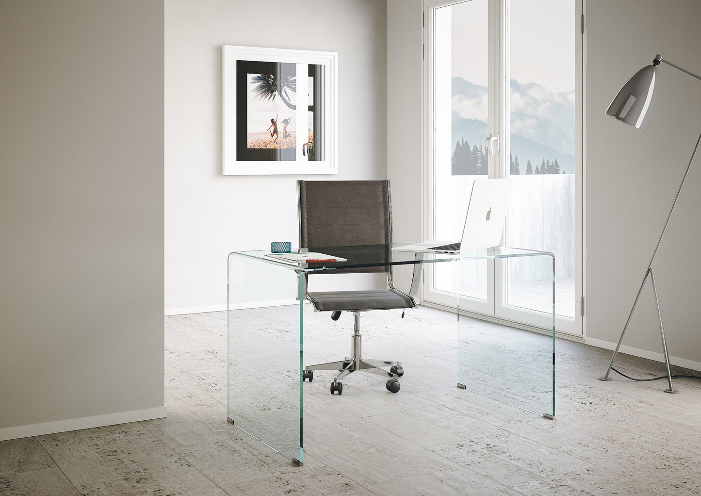 Scrivania Glass in vetro curvato 100x60x75 cm