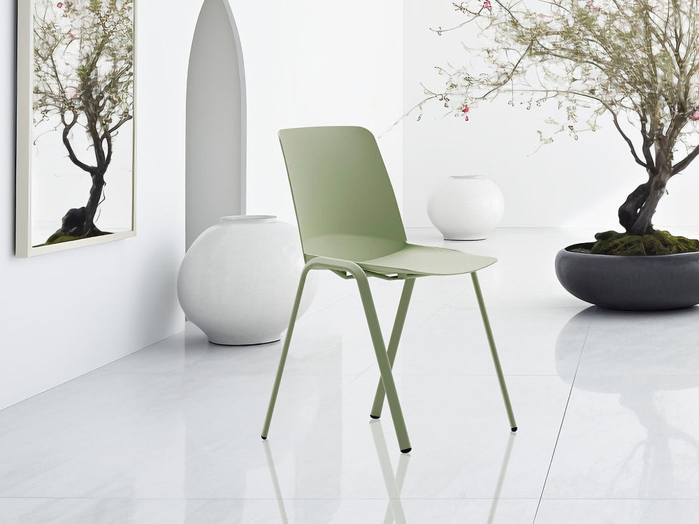 Sedia Asiago base legno seduta verde in polipropilene ( made in Italy)